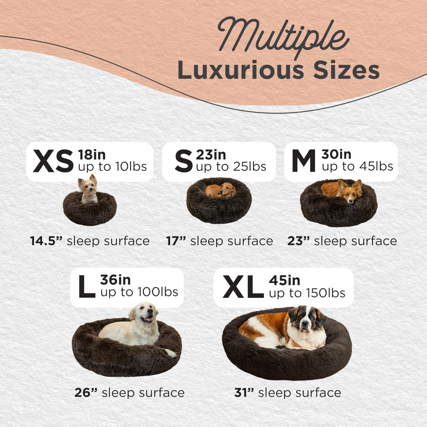 Give Your Pet More Than Just A Bed - Give Them The Calming Comfort They Deserve. Best Friends By Sheri Introduced The Original Calming Donut Dog And Cat Bed As A First-Of-Its-Kind Pet Bed Designed To Help Ease Stress And Promote Better Sleep. The Innovative Cuddler Design Supports Joints And Offers A Calming, Self-Warming Effect With Luxuriously Soft Faux Fur Reminiscent Of A Mother'S Fur Coat. Round And Cozy, This Pet Bed Is Carefully Crafted With A Lofty, Supportive Filling, Allowing Your Pet To Feel Instantly Enveloped In Premium Comfort. For Dogs And Cats Who Like To Burrow, It Creates A Perfect Space For Cuddles And Top-Notch Snuggling, And The Tall Bolsters Help Create A Calming Sense Of Security. The Fluffy Polyfill Within Keeps Its Loft Up To 3Xs Longer Than Standard Pet Beds, Providing Long-Lasting Comfort And Support. Perfect For A Deeper Nights Rest Or A Refreshing Daytime Nap, Our Soothing Bed Is Designed To Provide Optimal Neck, Joint, And Muscle Support. Ideal For Small, Medium, And Large Dogs And Cats, The Original Calming Donut Dog And Cat Bed Comes In Two Faux Fur Styles - Lux And Shag - To Provide Comfort For Every Breed Type. Pets With Long Fur Will Find Comfort In The Lux Design - Shorter Pile, Luxuriously Soft, And Great For Warmer Seasons - While Pets With Short Fur Will Appreciate The Self-Warming Nature Of The Shag Long Faux Fur Option That Creates A Cozy Haven During The Winter Season And In Cooler Climates. Both Styles Feature A Water And Dirt-Resistant Bottom That Helps Prevent Messes From Reaching Your Floors. When Accidents Happen, Or The Bed Needs A Quick Refresh, Cleaning Is A Breeze - Machine Wash And Follow The Instructions On The Label To Ensure Proper Care. Small Beds (18 In And 23 In) Are Entirely Machine Washable, While Medium, Large, And Extra Large Beds (30 In, 36 In, 45 In, And 54 In) Have A Removable Cover For Machine Washing. Safety & Care: For Pet Use Only. This Is Not A Chew Toy. Inspect Regularly And Discard If Any Part Becomes Damaged Or Separated. May Be Harmful If Ingested. If Item Becomes Wet, Some Color Transfer May Occur. Use Caution Around Light-Colored Upholstery Or Carpeting.