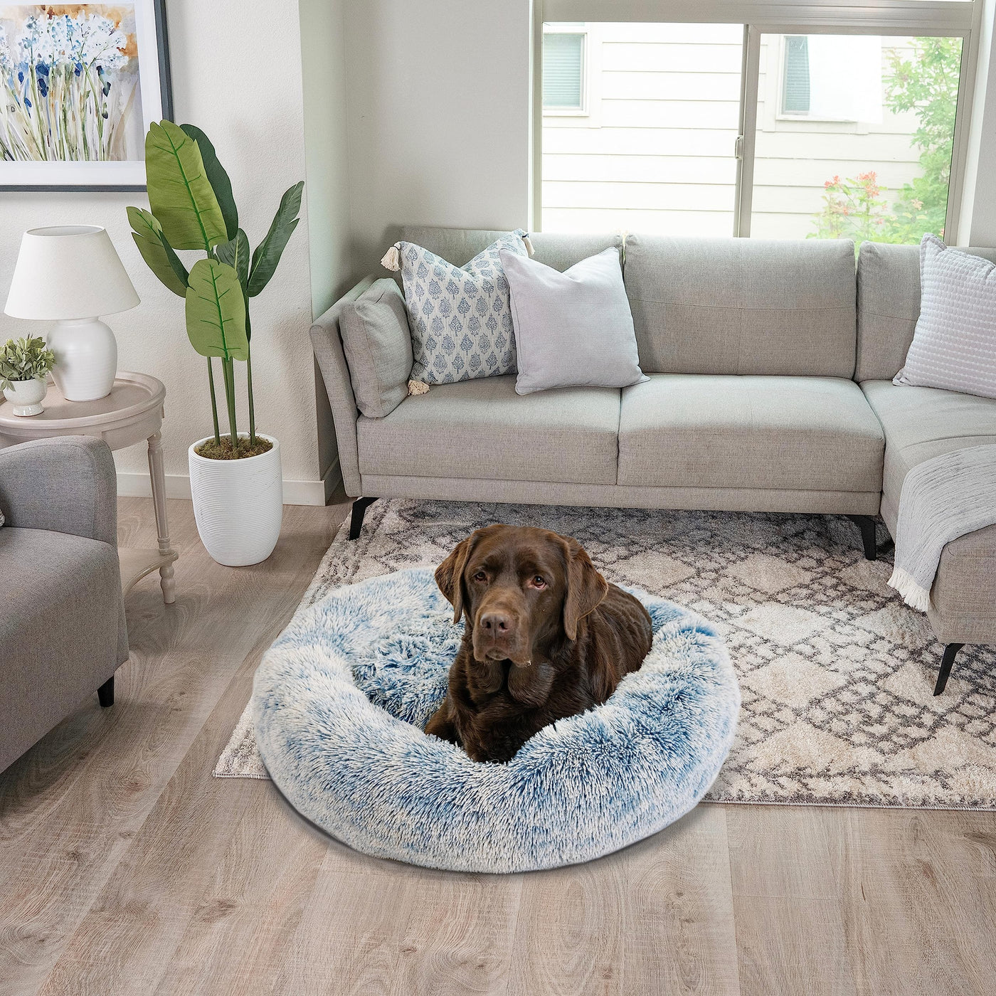 Best Friends By Sheri The Original Calming Donut Dog And Cat Bed In Shag Fur, Denim Blue, Large, 36X36