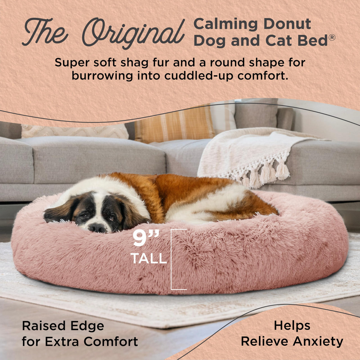 Best Friends By Sheri The Original Calming Donut Dog And Cat Bed In Shag Fur, Dusty Rose, Extra Large, 45X45
