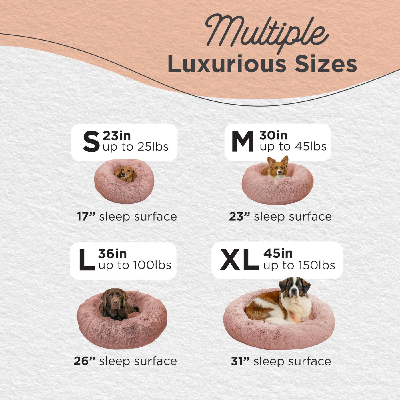 Give Your Pet More Than Just A Bed - Give Them The Calming Comfort They Deserve. Best Friends By Sheri Introduced The Original Calming Donut Dog And Cat Bed As A First-Of-Its-Kind Pet Bed Designed To Help Ease Stress And Promote Better Sleep. The Innovative Cuddler Design Supports Joints And Offers A Calming, Self-Warming Effect With Luxuriously Soft Faux Fur Reminiscent Of A Mother'S Fur Coat. Round And Cozy, This Pet Bed Is Carefully Crafted With A Lofty, Supportive Filling, Allowing Your Pet To Feel Instantly Enveloped In Premium Comfort. For Dogs And Cats Who Like To Burrow, It Creates A Perfect Space For Cuddles And Top-Notch Snuggling, And The Tall Bolsters Help Create A Calming Sense Of Security. The Fluffy Polyfill Within Keeps Its Loft Up To 3Xs Longer Than Standard Pet Beds, Providing Long-Lasting Comfort And Support. Perfect For A Deeper Nights Rest Or A Refreshing Daytime Nap, Our Soothing Bed Is Designed To Provide Optimal Neck, Joint, And Muscle Support. Ideal For Small, Medium, And Large Dogs And Cats, The Original Calming Donut Dog And Cat Bed Comes In Two Faux Fur Styles - Lux And Shag - To Provide Comfort For Every Breed Type. Pets With Long Fur Will Find Comfort In The Lux Design - Shorter Pile, Luxuriously Soft, And Great For Warmer Seasons - While Pets With Short Fur Will Appreciate The Self-Warming Nature Of The Shag Long Faux Fur Option That Creates A Cozy Haven During The Winter Season And In Cooler Climates. Both Styles Feature A Water And Dirt-Resistant Bottom That Helps Prevent Messes From Reaching Your Floors. When Accidents Happen, Or The Bed Needs A Quick Refresh, Cleaning Is A Breeze - Machine Wash And Follow The Instructions On The Label To Ensure Proper Care. Small Beds (18 In And 23 In) Are Entirely Machine Washable, While Medium, Large, And Extra Large Beds (30 In, 36 In, 45 In, And 54 In) Have A Removable Cover For Machine Washing. Safety & Care: For Pet Use Only. This Is Not A Chew Toy. Inspect Regularly And Discard If Any Part Becomes Damaged Or Separated. May Be Harmful If Ingested. If Item Becomes Wet, Some Color Transfer May Occur. Use Caution Around Light-Colored Upholstery Or Carpeting.