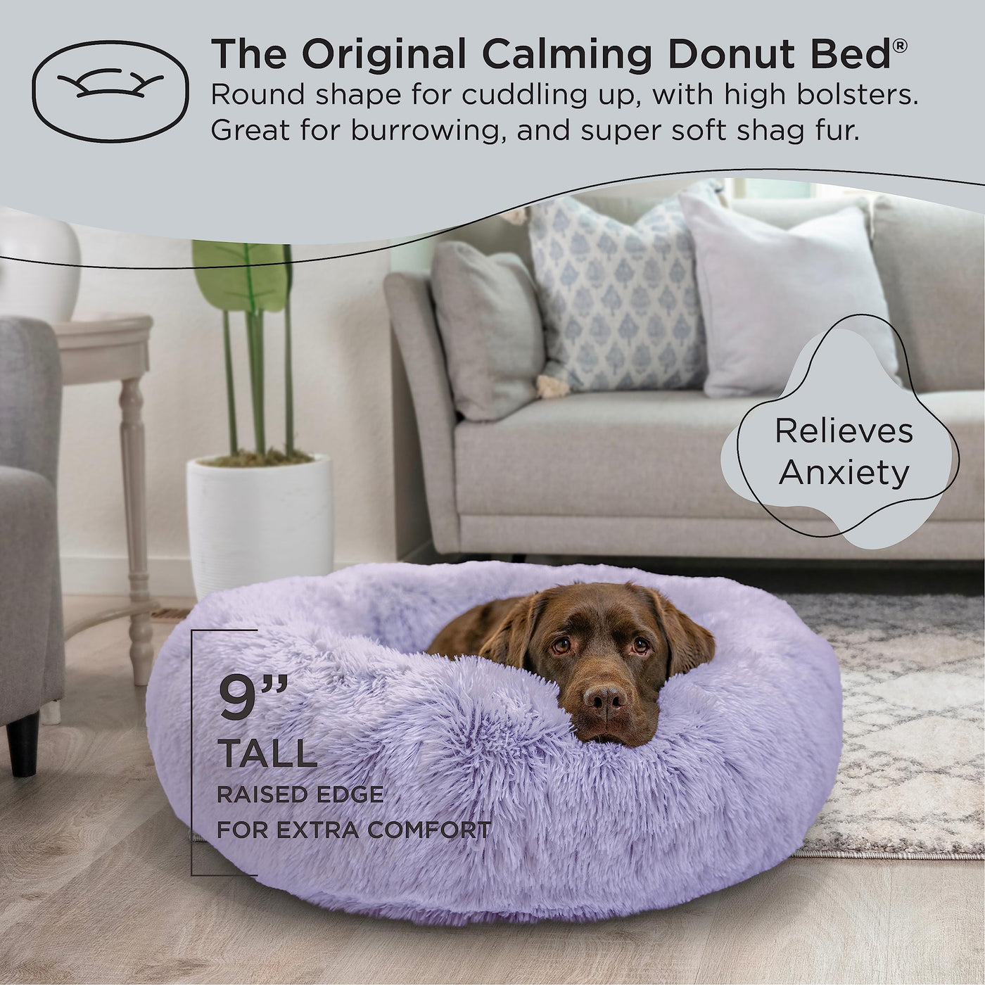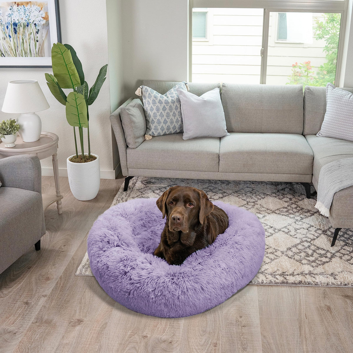 Best Friends By Sheri The Original Calming Donut Dog And Cat Bed In Shag Fur, Lavender, Large, 36X36