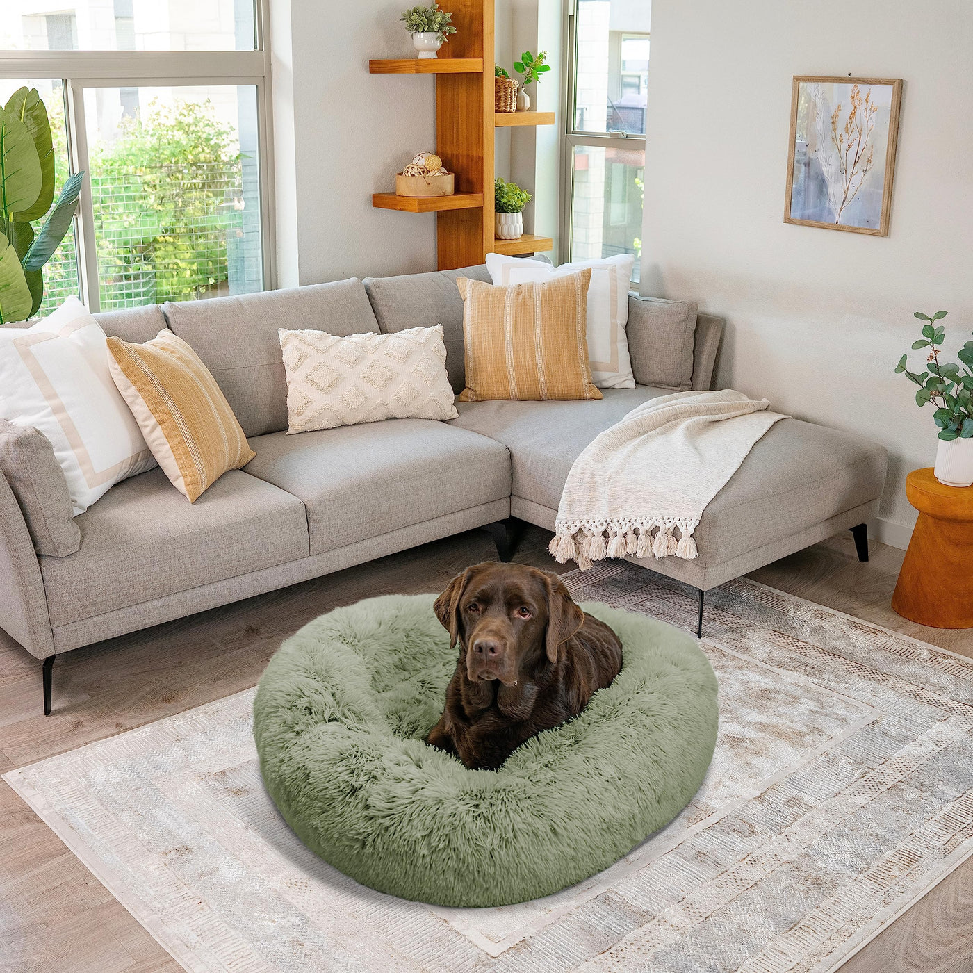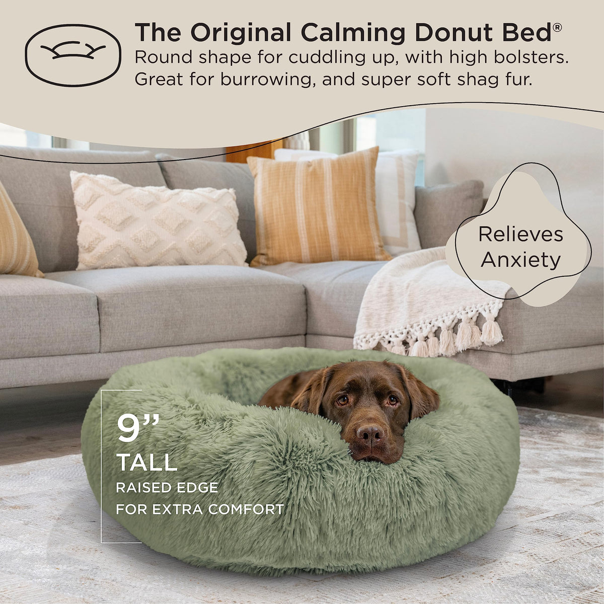 Best Friends By Sheri The Original Calming Donut Dog And Cat Bed In Shag Fur, Sage Green, Large, 36X36