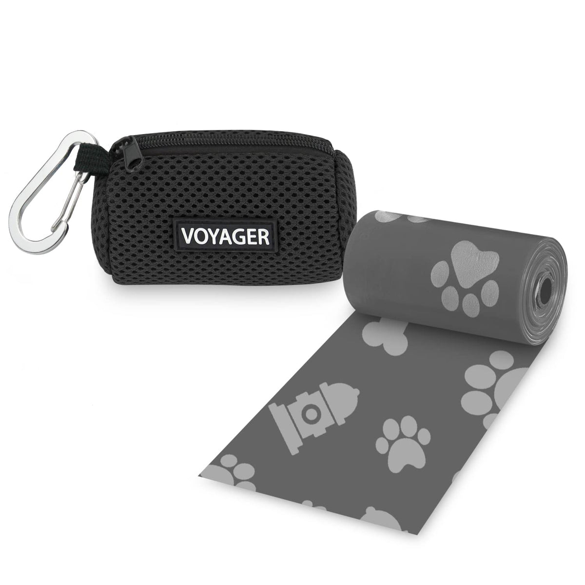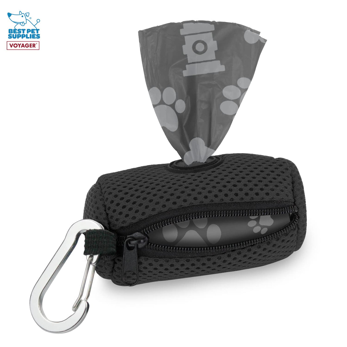 Best Pet Supplies Dog Poop Bag Holder Leash Attachment With 15 Bags, Black, Reusable Mesh Dispenser Pouch For Travel, Walking, P