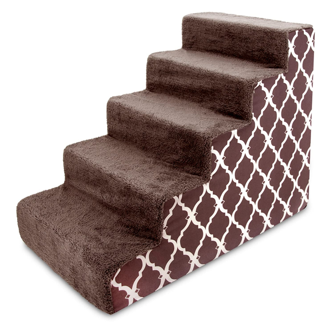 Best Pet Supplies Dog Stairs For Small Dogs & Cats, Foam Pet Steps Portable Ramp For Couch Sofa And High Bed Non-Slip Balanced Indoor Step Support, Paw Safe No Assembly - Brown Lattice Print, 5-Step