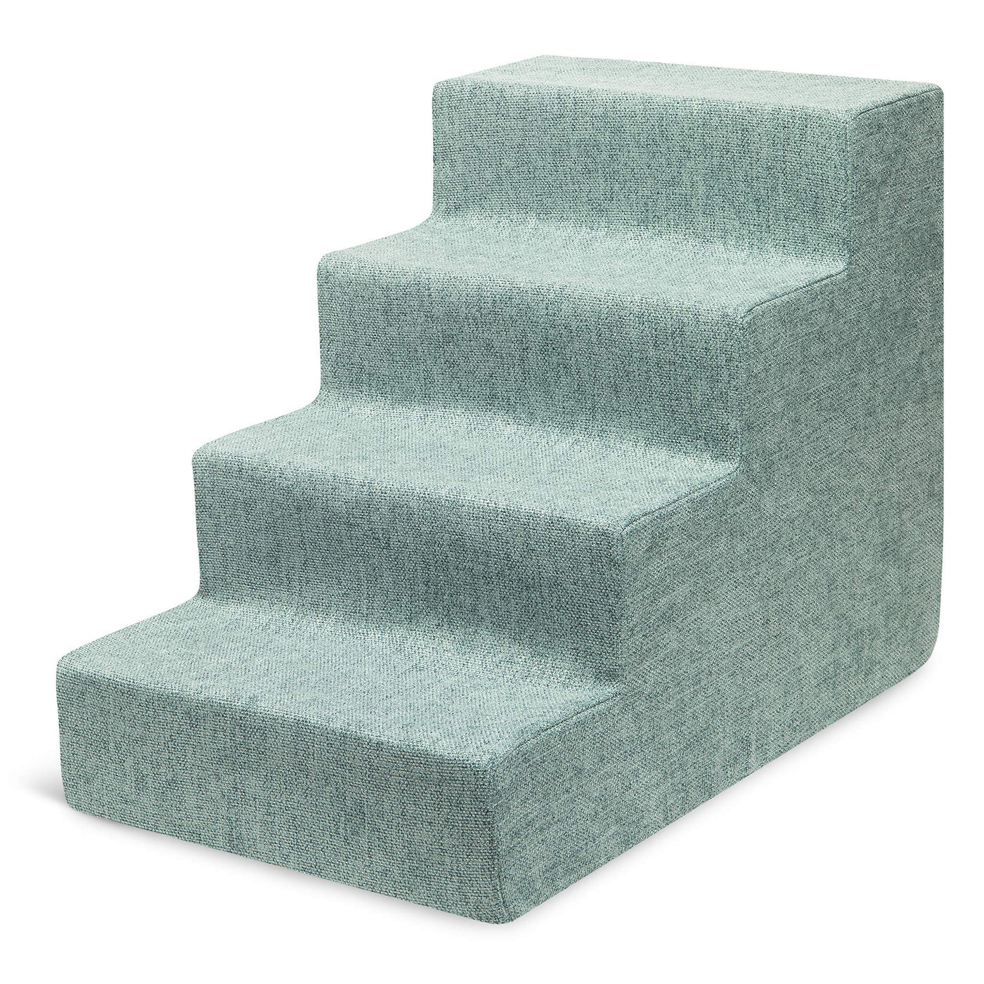 Best Pet Supplies Dog Stairs For Small Dogs & Cats, Foam Pet Steps Portable Ramp For Couch Sofa And High Bed Non-Slip Balanced Indoor Step Support, Paw Safe No Assembly - Pale Teal, 4-Step