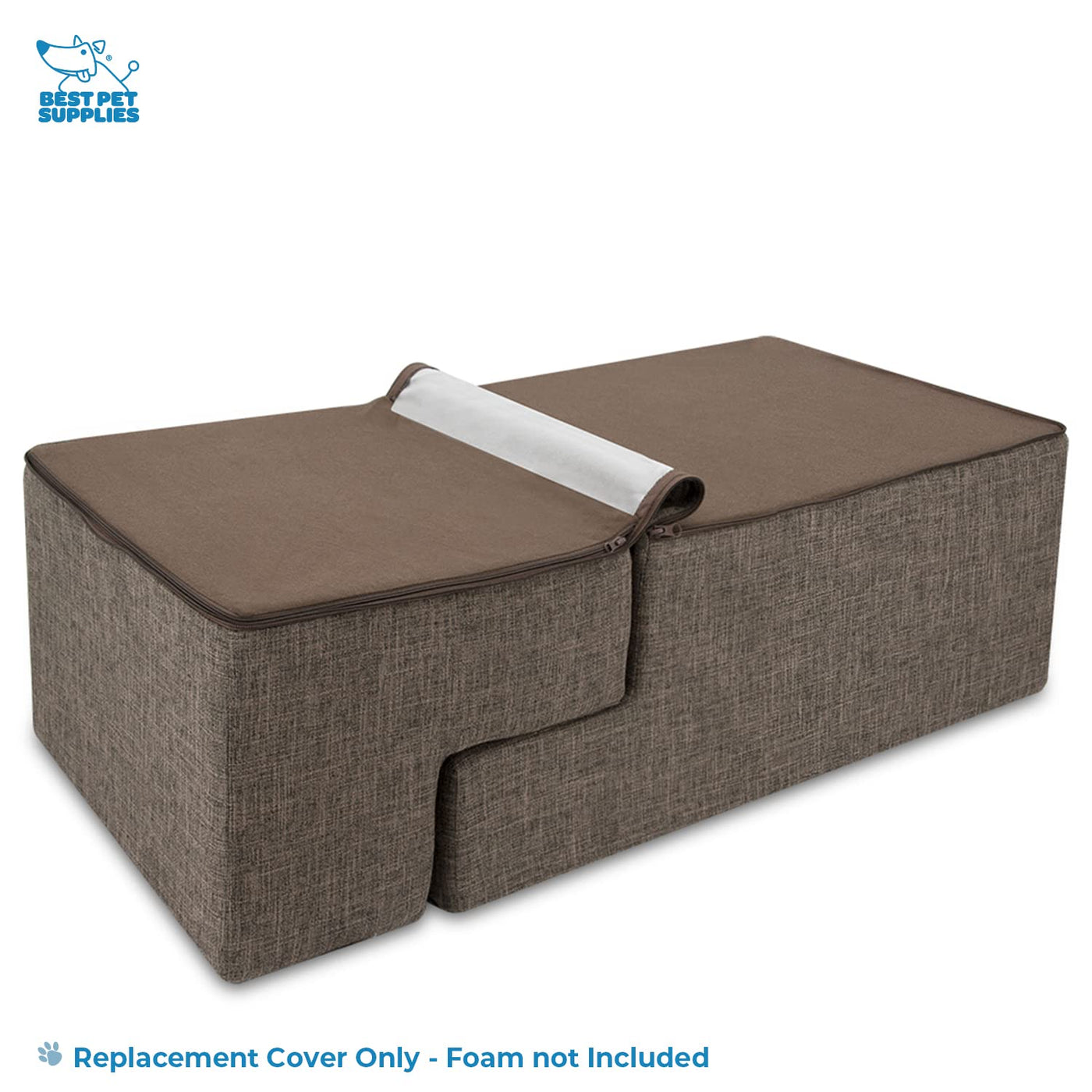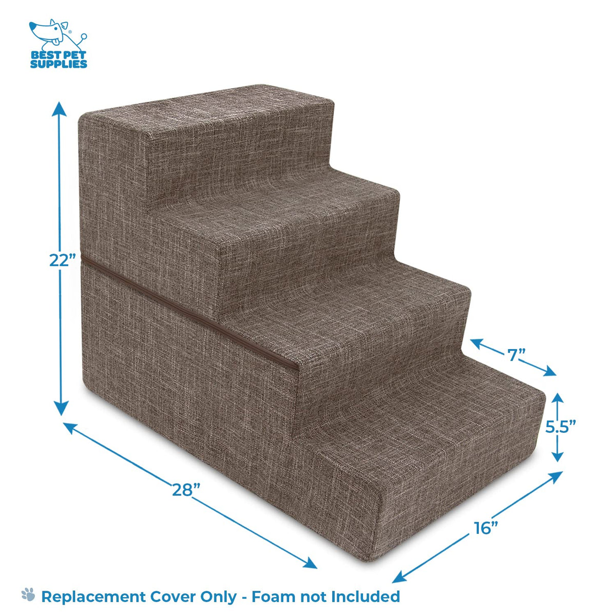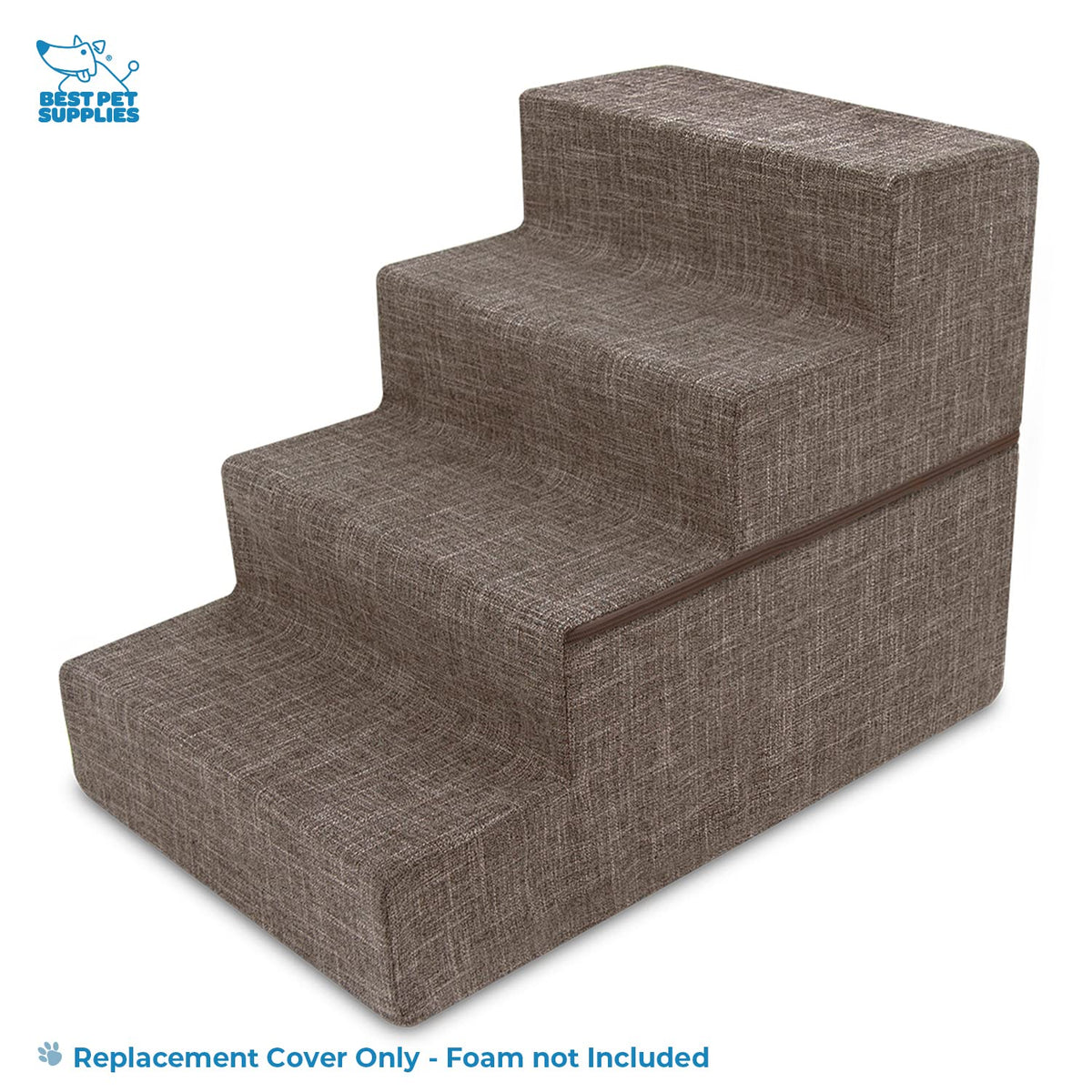 Best Pet Supplies Foldable Pet Stairs Cover For Foam Dog Ramps, Replacement Slip With Non-Slip Step Surface, Plush And Soft Fabric, Provides Paw Traction And Stability - Brown Linen, 4-Step