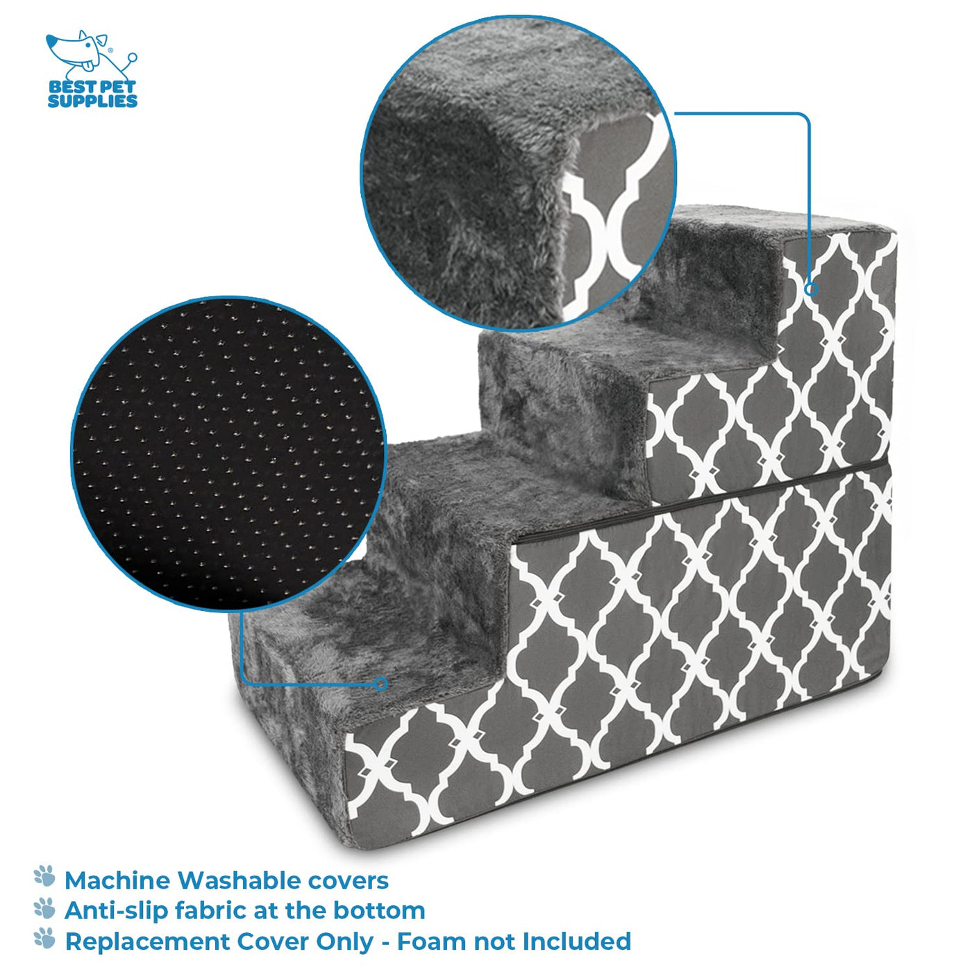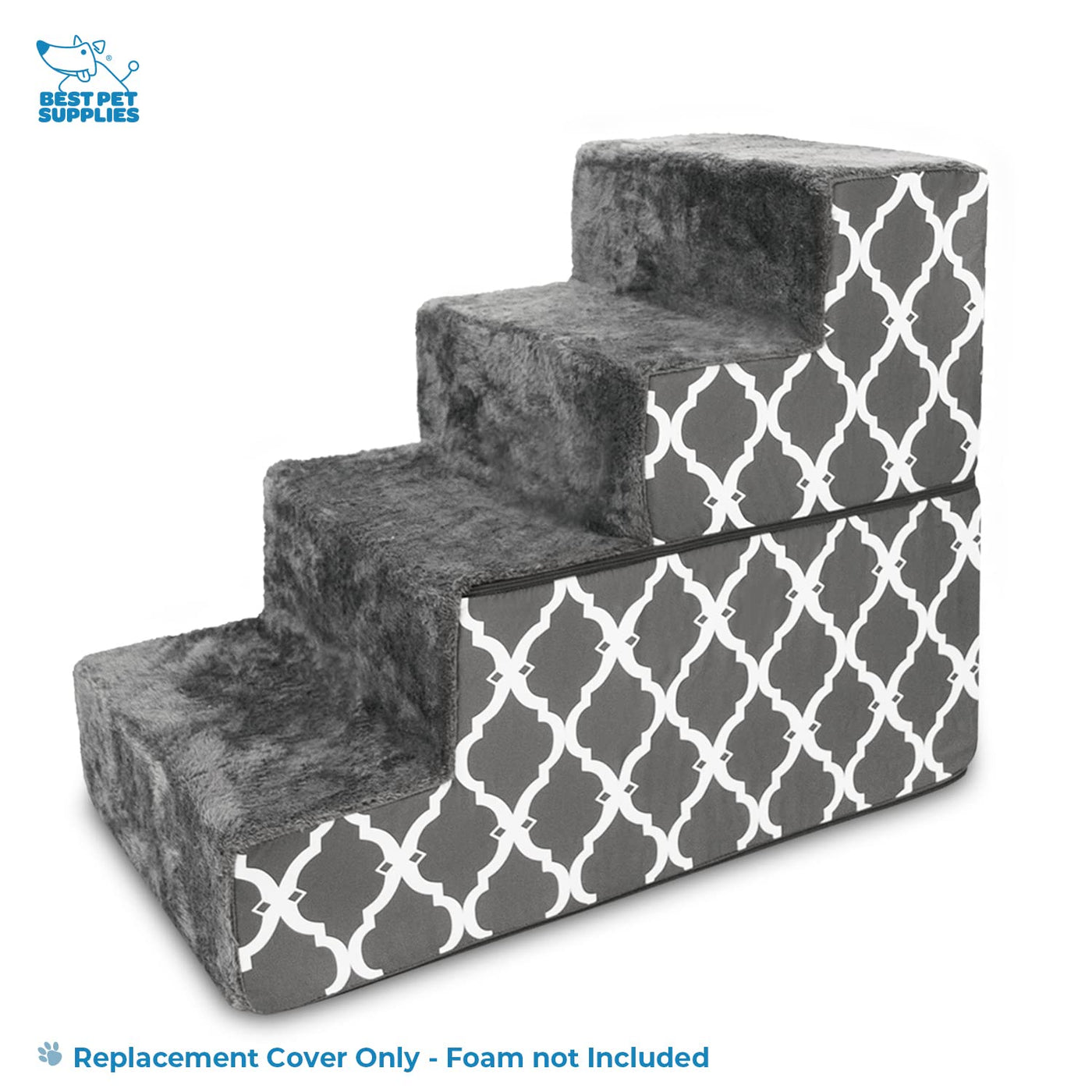 Best Pet Supplies Foldable Pet Stairs Cover For Foam Dog Ramps, Replacement Slip With Non-Slip Step Surface, Plush And Soft Fabric, Provides Paw Traction And Stability - Gray Lattice, 4-Step