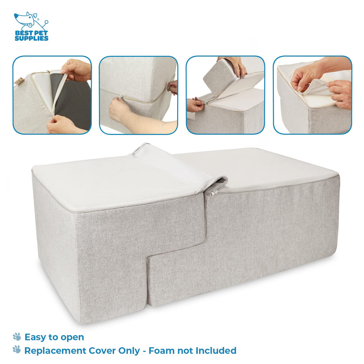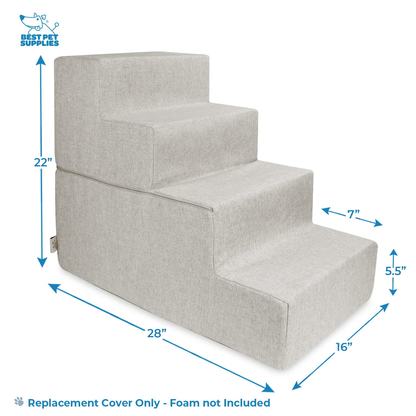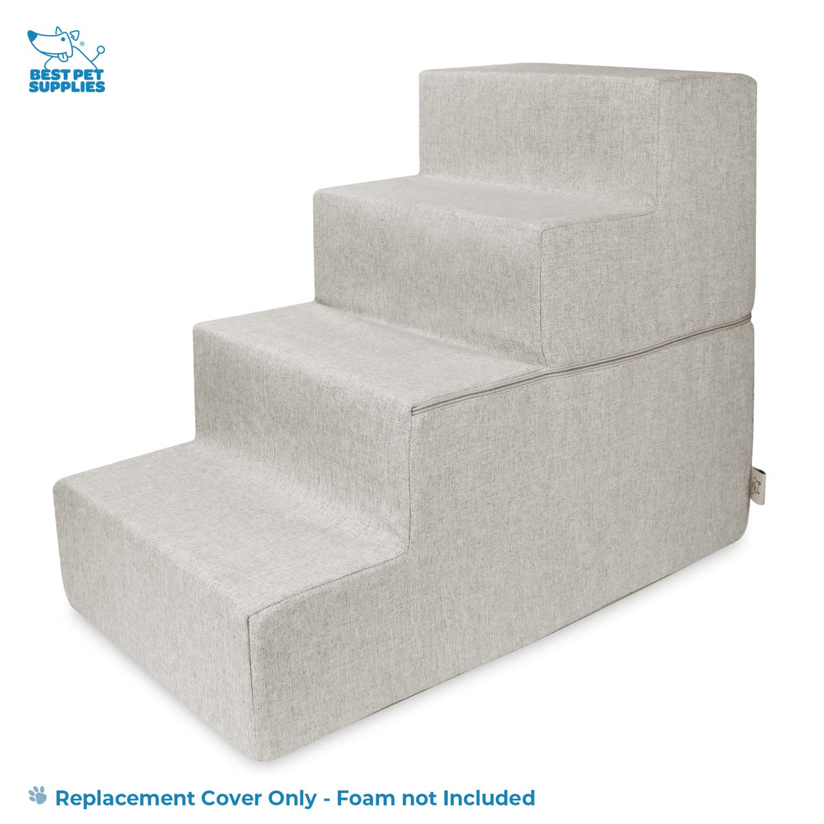 Best Pet Supplies Foldable Pet Stairs Cover For Foam Dog Ramps, Replacement Slip With Non-Slip Step Surface, Plush And Soft Fabric, Provides Paw Traction And Stability - Sand, 4-Step