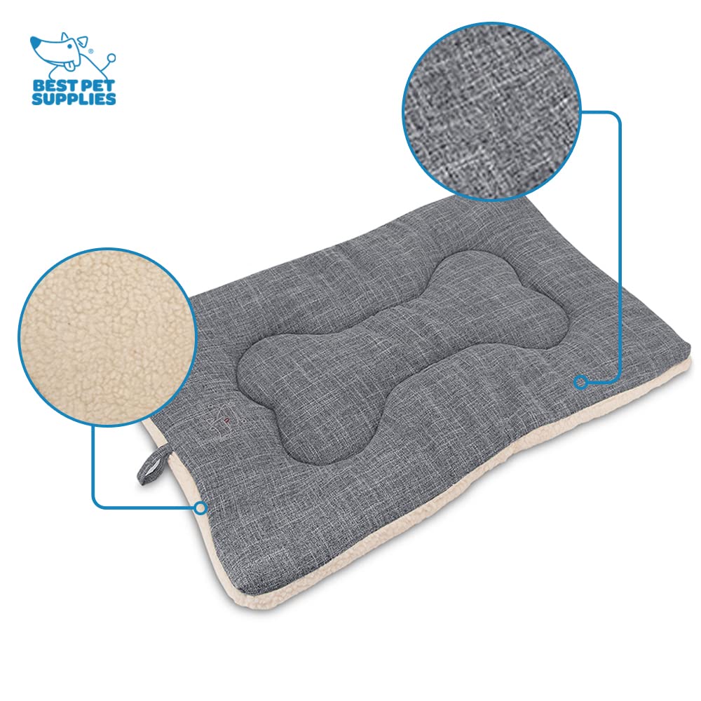 Turn Any Pet Crate Into A Comfy Plush Pad Ease The Discomfort Looking For The Perfect Mat To Make That Pet Crate A Bit Comfier For Your Furry Friend? Then How About Treating Your Pooch Or Kitty To The Comfiest One There Is With Soft Faux Suede On One Side And Cozy Lambs Wool On The Other, These Double Sided Crate Mats Turn Any Trip Into An Enjoyably Comfy Ride. And Weve Ensured That Our Liners Stay In Plush Condition By Using The Highest Quality Poly-Fill To Create The 2-Inch Padding. So Unlike Other Crate Pads That Quickly Flatten Out, These Mats Will Have Your Pup Happily Wagging Their Tail For Ages To Come. Talk About Beautiful We Really Do Put Great Attention To Detail When Designing Every Soft Touch Mat. Youll Love The Eye-Catching Choice Of Color, Swoon Over The Beautiful Coral Fleece Trimming, And Crack A Smile Every Time You Catch A Glimpse Of The Decorative Bone-Shaped Stitching. But You Know The One Thing That Trumps Even This Mats Beauty? The Versatility You Can Use It As A Stylish Dog Bed, Kennel Mat, Comfy Cat Pad For The Counter, Or Even As A Car Seat Cover To Keep Pet Hair Off That Expensive Leather. Its That One Pet Accessory That Will Be Put To Thorough Use Here Are More Great Features Of Our Crate Mat:- Conveniently Machine Washable For A Hassle-Free Clean.- Comes In 5 Sizes To Fit Into Just About Any Pet Crate.- Premium Materials And Strong Stitching Ensures Maximum Durability.- Soft Suede And Lambs Wool Never Irritates Your Pets Skin. Keep Your Four-Legged Friend Perfectly Comfy In Their Crate With A Two-Sided Mat That Combines Head-Turning Design With Superior Versatility. Click Add To Cart Now.