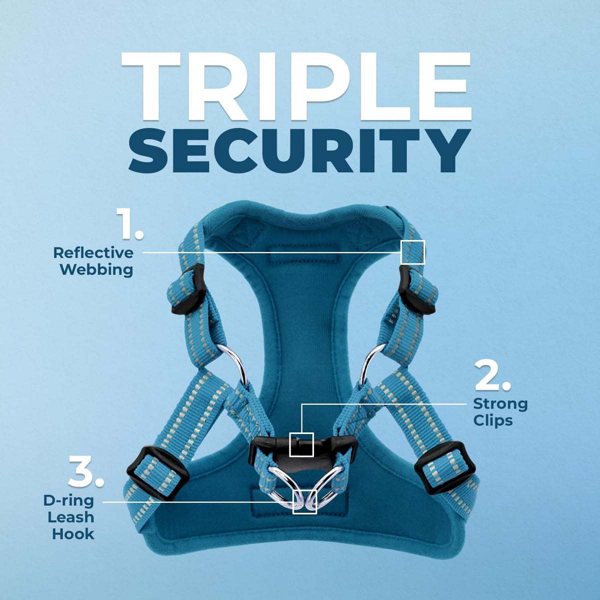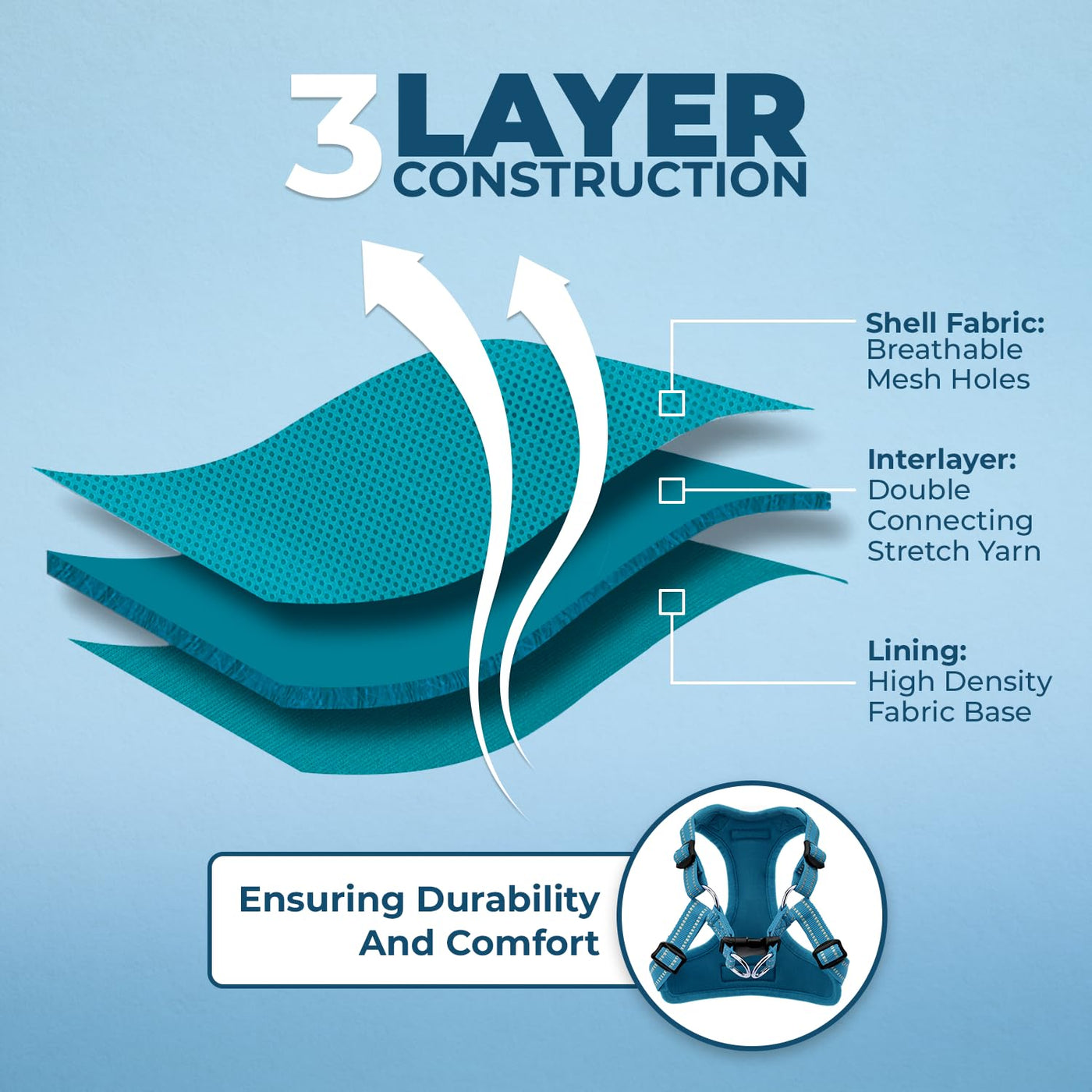 Best Pet Supplies Voyager Adjustable Dog Harness With Reflective Stripes For Walking, Jogging, Heavy-Duty Full Body No Pull Vest With Leash D-Ring, Breathable All-Weather - Harness (Turquoise), S