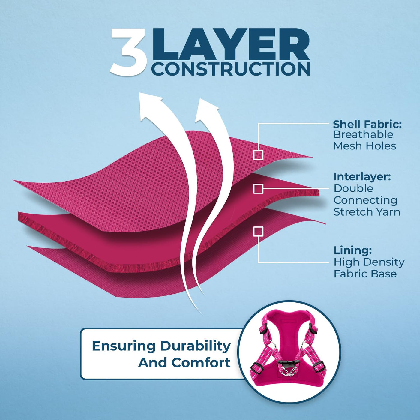 TREAT YOUR PUPS TO SUPREME COMFORT ON YOUR WALKS All About the Fit Just like us, pups come in all shapes and sizes. Some are top heavy, some slender than usual, and others a bit round and pudgy from indulging on one too many treats. And this fully adjustable step in harness allows you to complement their beautifully unique shape! Unlike others that come in a one-size-fits-all design, our harness is fitted with the most adjustment points to create a custom fit for your pock. So now your furry buddy wont choke from a harness thats too tight on the neck or chafe from one that fits poorly around the legs. Emphasis on Safety No more fears about your cherished canine breaking free of their harness when youre out and about! Fitted with a heavy duty buckle and strong metal dual D-rings, the Voyager is tough enough to handle the most high-energy pets and keep them safely contained during your walks and runs. And these newly-designed pet harnesses now come with high visibility 3M piping to ensure your pooch stands out in the dark. Enjoy greater piece of mind as you have a blast with your pup outdoors Here are more reasons to love this fully adjustable step in harness: - Evenly distributes pressure around the chest and stays clear of the neck. - Comes with a padded mesh panel for superior comfort. - Straightforward step-in design takes the hassle out of prepping for walks. - Designed with premium materials and strong stitching for maximum durability. - Available in beautiful shades of black, red, turquoise and fuchsia. Count on the fully adjustable Voyager harness to make that walk or run and absolute treat for your furry buddy. Click Add to Cart now!