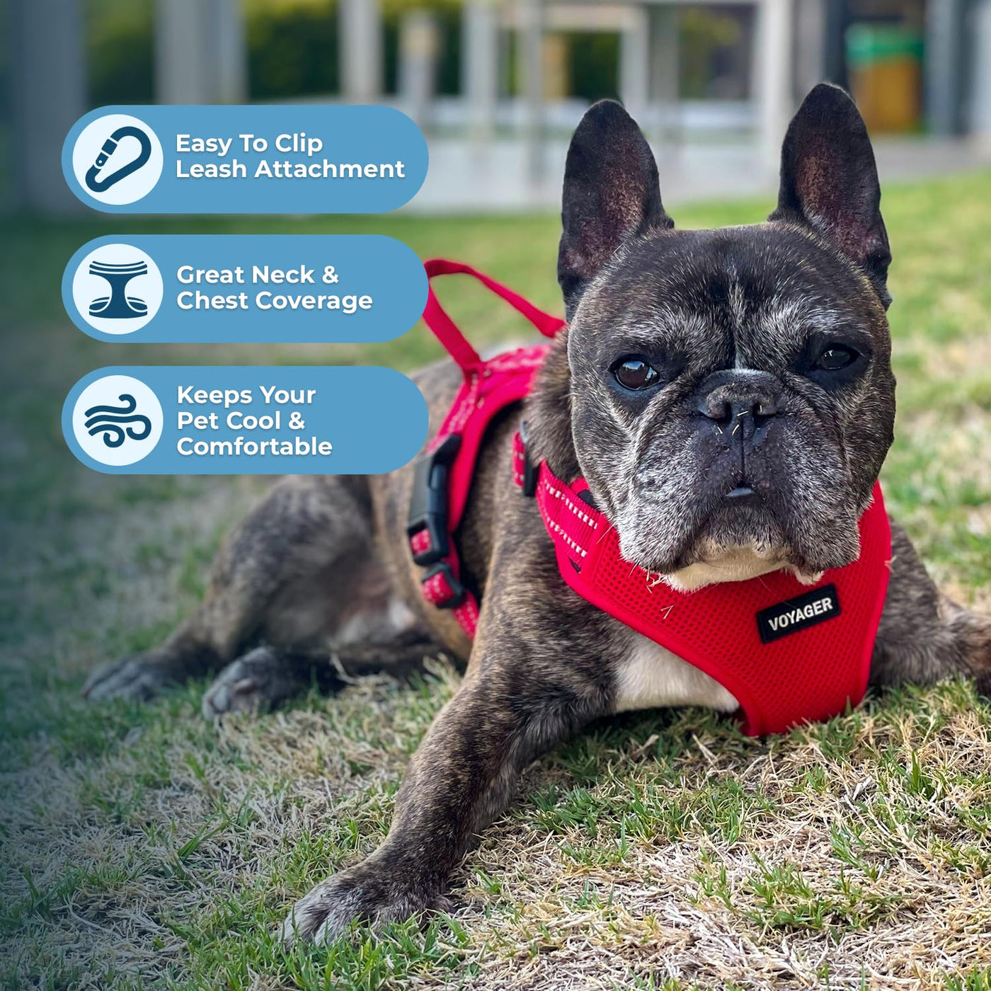 Best Pet Supplies Voyager Adjustable Dog Vest Harness Breathable No Pull Harness For Small, Medium, Large Dogs, Heavy Duty Harness For Walking, Jogging, Easy Step-In, Reflective Stripes - (Red), M