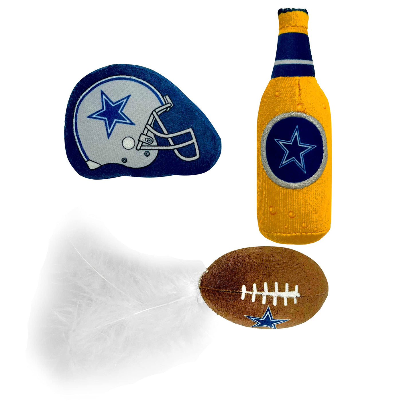 BEST PLUSH CAT TOY - NFL DALLAS COWBOYS Complete Set of 3 piece Cat Toys filled with Fresh Catnip. Includes: 1 Helmet Cat Toy, 1