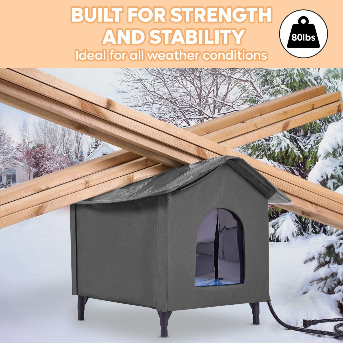 The Bestier Heated Outdoor Cat House Stands Out With Its Upgraded Features, Including The Latest Heating Pad With A Timer And Adjustable Temperature Settings. Choose From 5 Timer Ranges (2-4-8-12-24H-Always On) And 6 Temperature Levels (97-131F) To Suit Various Conditions. Constructed From High-Quality Materials Such As 900D Oxford Fabric, High-Elastic Hollow Panels, Pearl Cotton, And Aluminum Foil, This Cat House Offers Sturdy Support And Efficient Heat Circulation. Its Elevated Design Prevents Rainwater And Snow From Covering The Door, Ensuring A Dry And Cozy Environment For Your Feline Friend.