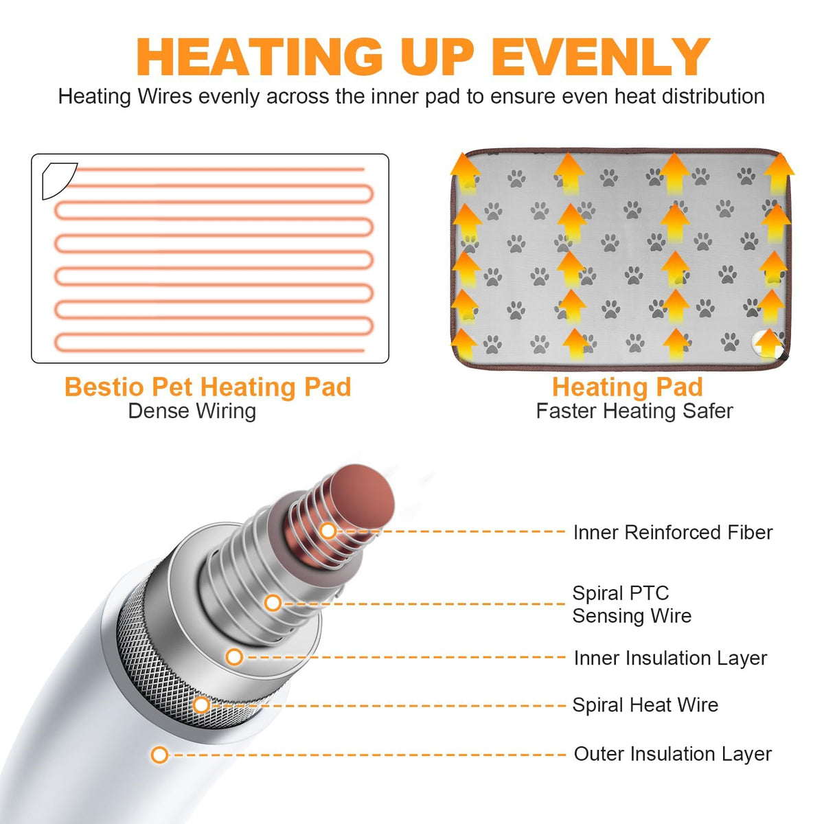 Bestio Cat Heating Pad,34 21 In Heating Pad For Pet,Dog Heating Pad Outdoor With Metal Protective Tube + Waterproof Material,He