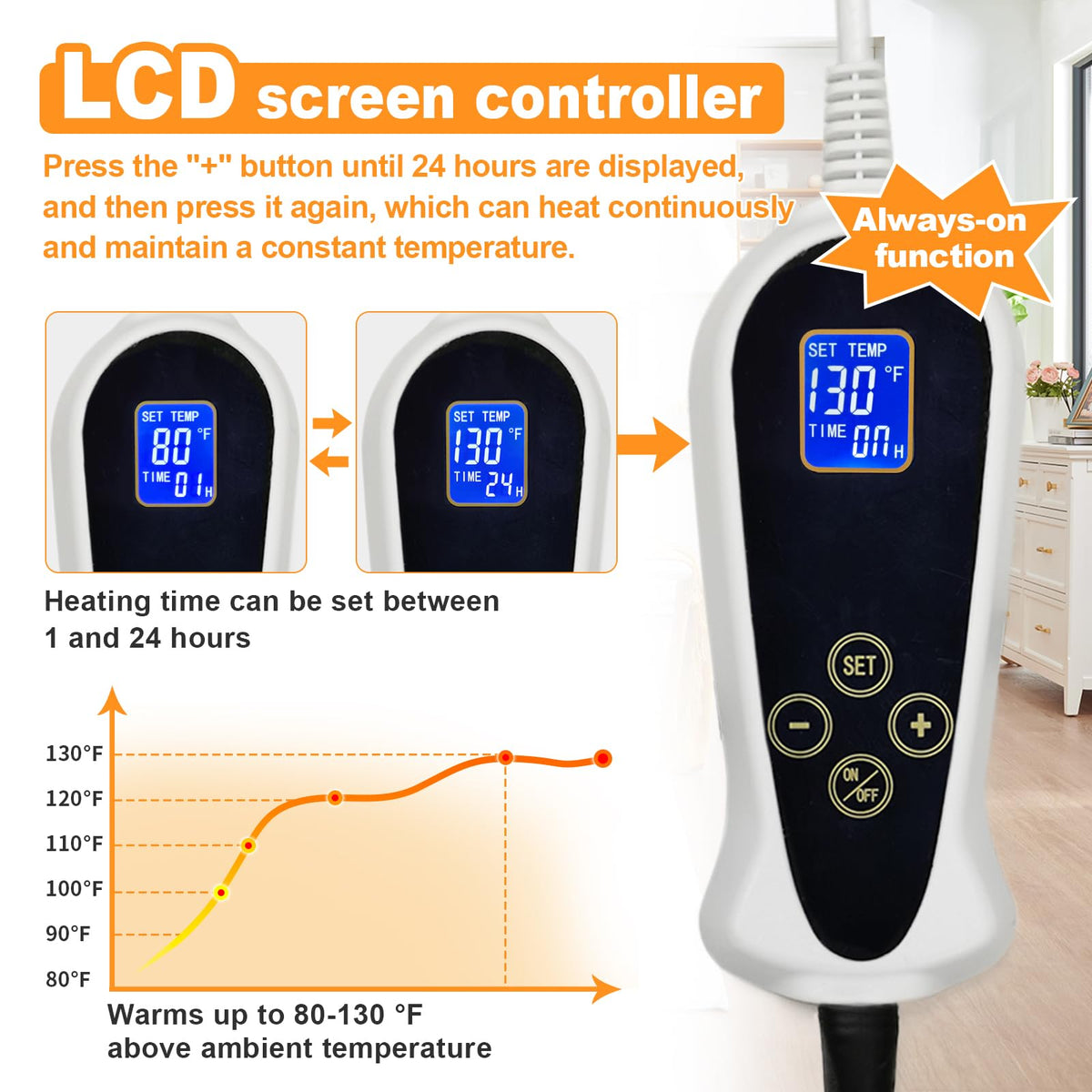 Bestio Pet Heating Pad, 18 X 18 In Heated Cat Bed Adjustable Thermostat + Normally On Function With Metal Protective Tubing And