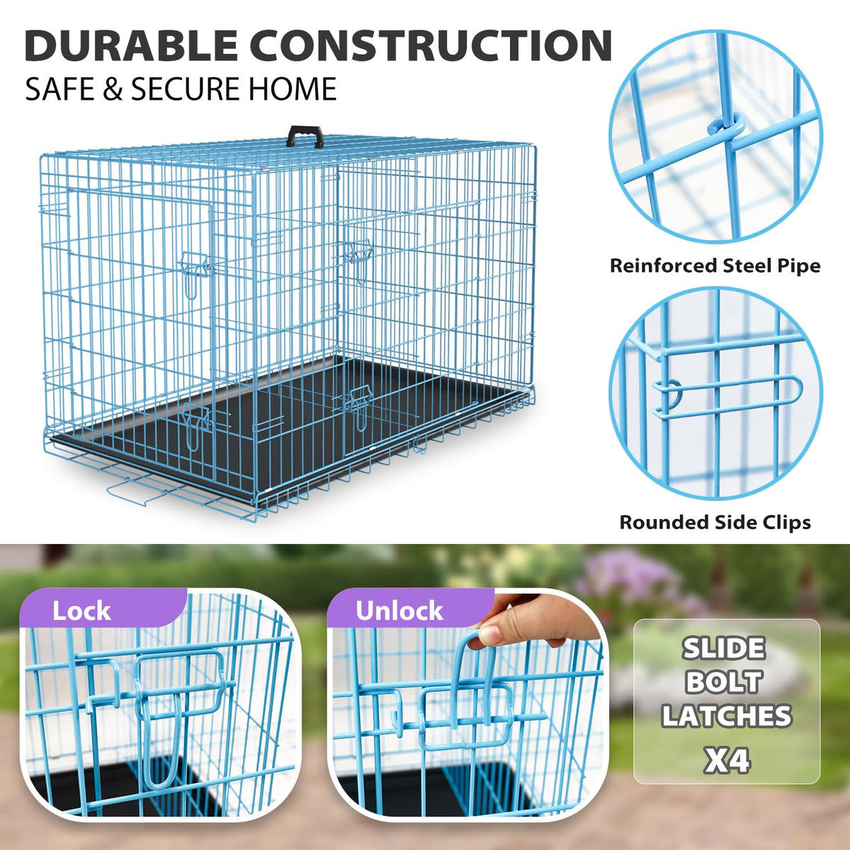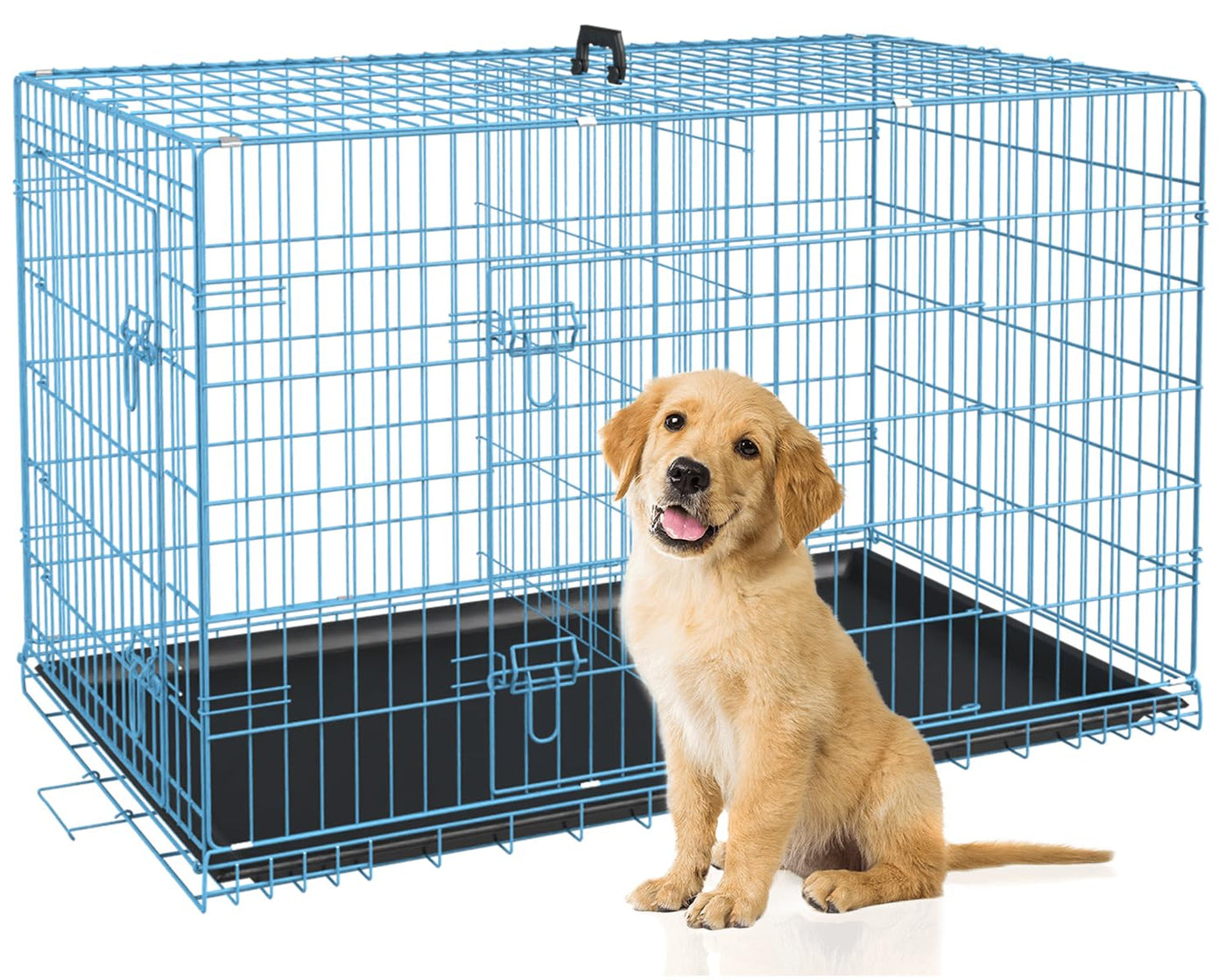 ?????SECURE HOME?Rounded corners for your pets protection. The pet cage have two large doors, one on the front and one on the side, are easy to open, close. Each door also has 2 heavy-duty slide-bolt latches to securely lock it in place to keep your pet safe inside.Dog cage dog crate dog kennel dog kennels and crates for large dogs | ?????EASY TO SETUP?This dog crate is a must have for any dog lovers. The dog cage can be set up in seconds, with no tools required for assembly. When not in use, this metal dog crate folds flat for convenient storage, safekeeping.Dog cage dog crate dog kennel dog kennels and crates for large dogs | ?????EASY TO CLEAN?The dog cage Includes a durable leak-proof ABS composite tray that will not stain, warp, corrode or retain pet odors. The pet cage bottom pan features an integrated lip around the perimeter, to contain any mess from spilling outside the dog kennel.Dog cage dog crate dog kennel dog kennels and crates for large dogs | ?????FOLDABLE & PORTABLE?our dog cage collapsible design makes it ideal for travel and camping. Fold-and-carry construction dog crate with collapsible design that folds into a package less than 3 Thick. Features a removable carrying handle that can be mounted on any side of the crate as needed.Dog cage dog crate dog kennel dog kennels and crates for large dogs | ?? ???After-Sale Service?If you have any problem with the dog crate or meet any question during the usage, please feel free to contact our customer service, we promise we will provide you the most professional technical support and the best solution.Dog cage dog crate dog kennel dog kennels and crates for large dogs