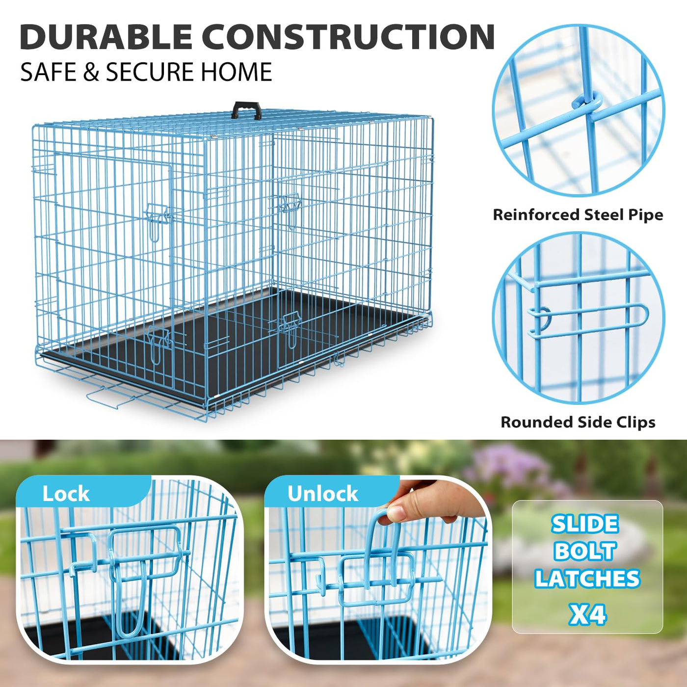 ?????SECURE HOME?Rounded corners for your pets protection. The pet cage have two large doors, one on the front and one on the side, are easy to open, close. Each door also has 2 heavy-duty slide-bolt latches to securely lock it in place to keep your pet safe inside.Dog cage dog crate dog kennel dog kennels and crates for large dogs | ?????EASY TO SETUP?This dog crate is a must have for any dog lovers. The dog cage can be set up in seconds, with no tools required for assembly. When not in use, this metal dog crate folds flat for convenient storage, safekeeping.Dog cage dog crate dog kennel dog kennels and crates for large dogs | ?????EASY TO CLEAN?The dog cage Includes a durable leak-proof ABS composite tray that will not stain, warp, corrode or retain pet odors. The pet cage bottom pan features an integrated lip around the perimeter, to contain any mess from spilling outside the dog kennel.Dog cage dog crate dog kennel dog kennels and crates for large dogs | ?????FOLDABLE & PORTABLE?our dog cage collapsible design makes it ideal for travel and camping. Fold-and-carry construction dog crate with collapsible design that folds into a package less than 3 Thick. Features a removable carrying handle that can be mounted on any side of the crate as needed.Dog cage dog crate dog kennel dog kennels and crates for large dogs | ?? ???After-Sale Service?If you have any problem with the dog crate or meet any question during the usage, please feel free to contact our customer service, we promise we will provide you the most professional technical support and the best solution.Dog cage dog crate dog kennel dog kennels and crates for large dogs