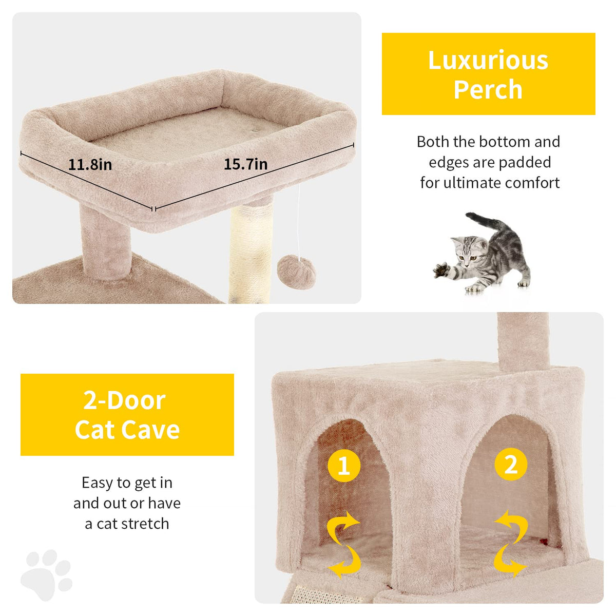 Bestpet 36 Inches Cat Tree For Indoor Cats Cat Tower With Scratching Posts Multi-Level Cat Furniture Condo With Ramp, Perch Spac