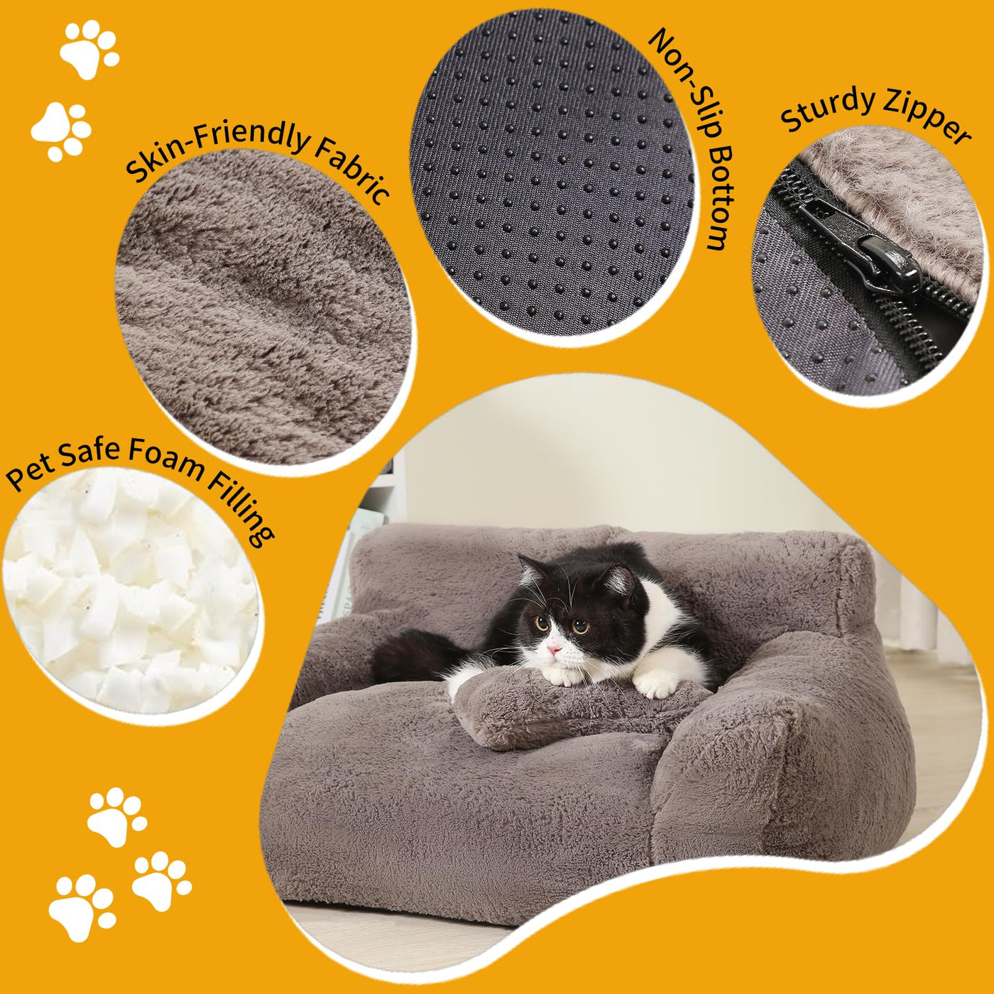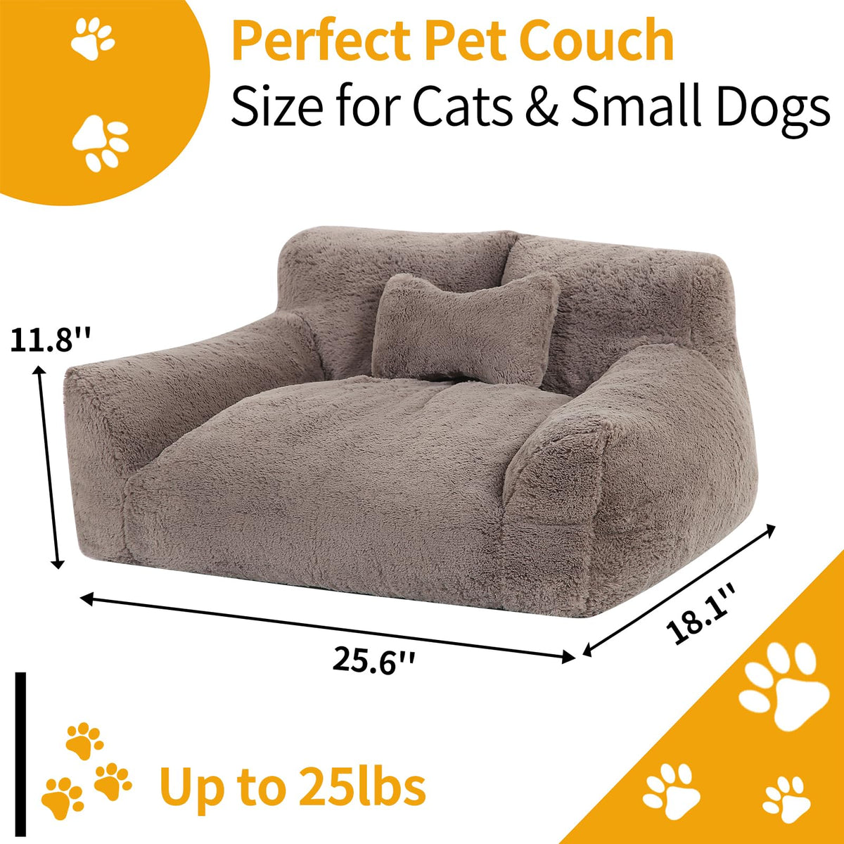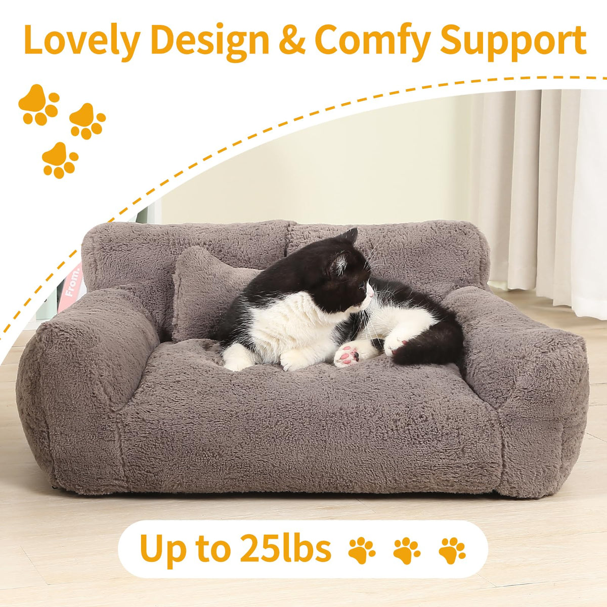 Bestroyal Fluffy Cat Couch For Indoor Cats, Small Dog Bed With Bone Shaped Pillow, Anti-Anxiety Pet Bed With Washable Cover, Bro