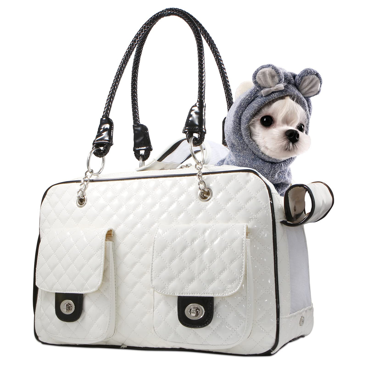 Betop House Soft-Sided Pet Travel Carrier Airline Approved For Pet Small Dog And Cat Collapsible, White Shiny Patent Leather