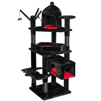 The Coffin Cat Tree Features A Gothic Design With Coffin-Shaped Platforms, Gothic Cat House And The Contrasting Of Red And Black Colors Creating Dark Elegance And Mystique