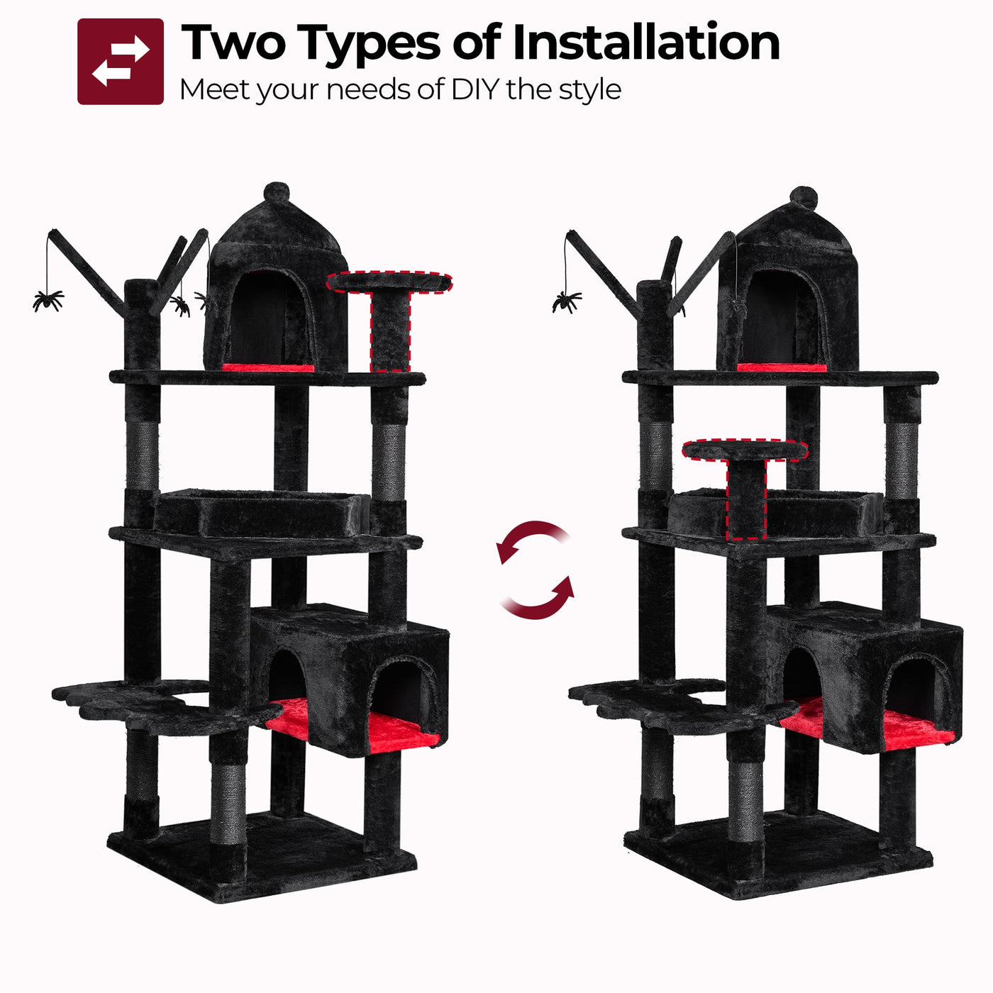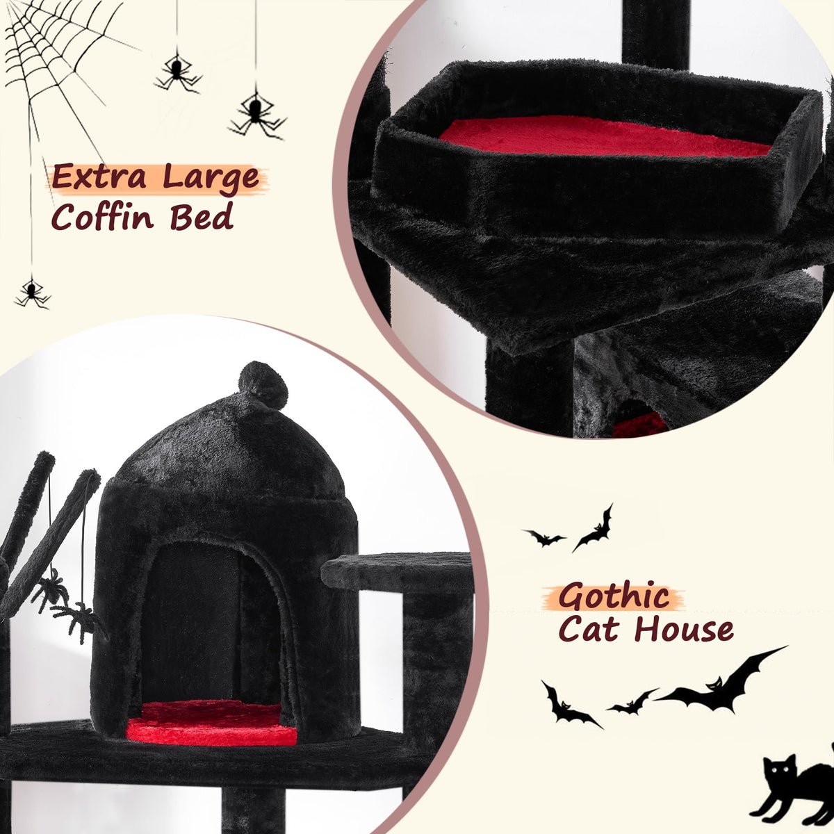 Bewishome Large Gothic Cat Tree With Coffin Bed, 63'' Multi-Level Goth Cat Tree Tower For Large Cats With Cat Condo, Scratching