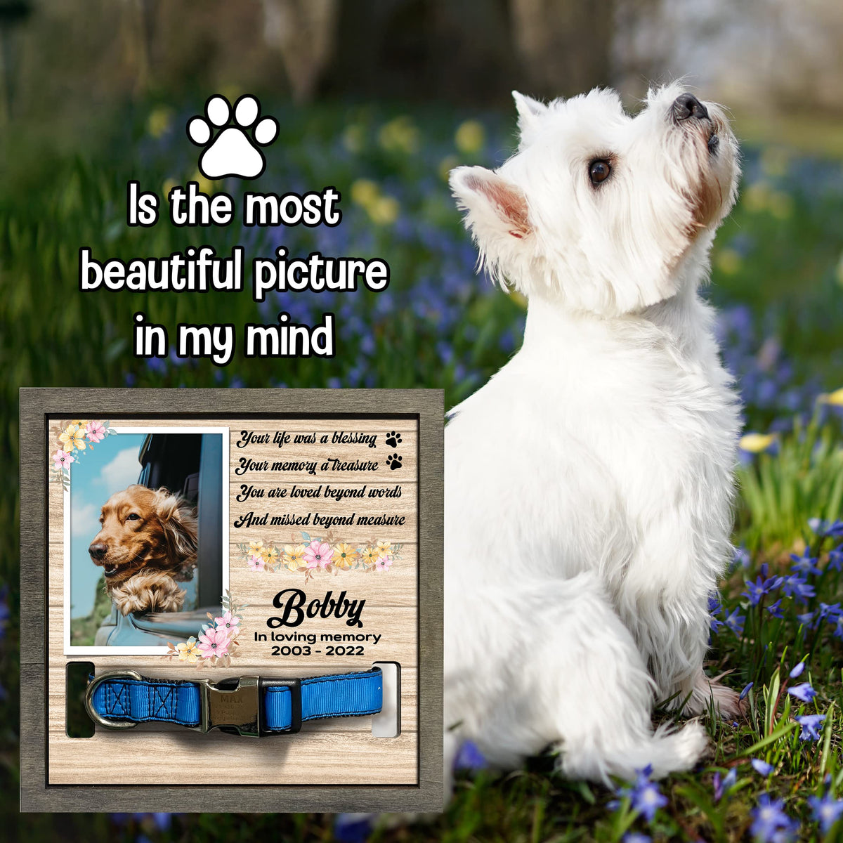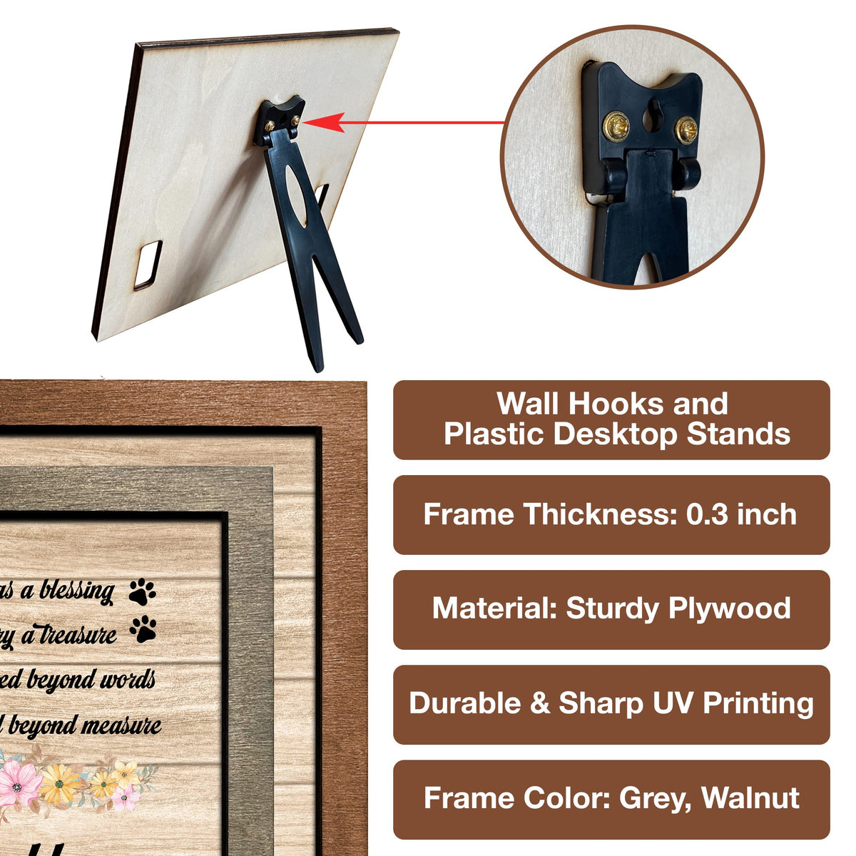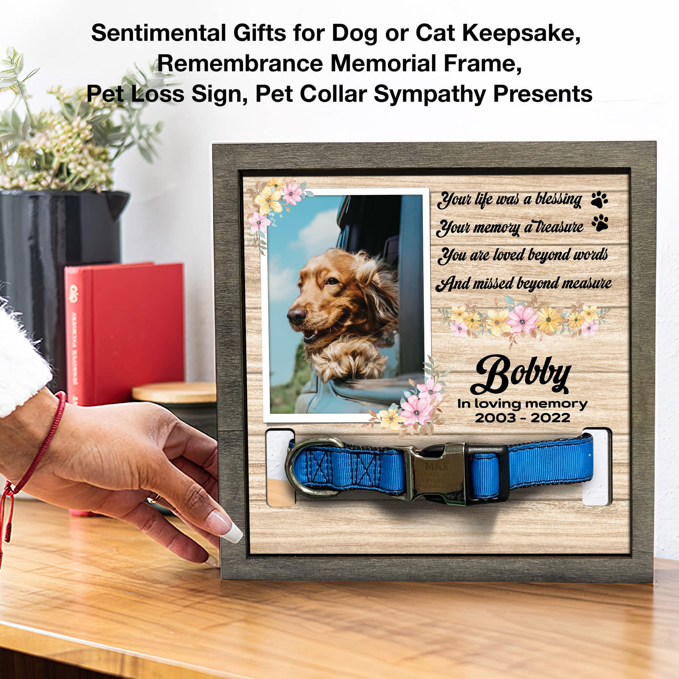 - 2 sizes: 8x8', and 8.7x10.6''. - 2 different color frame: Grey and Walnut. Each of our pet loss sign frames for the dog is very convenient for table decoration applications, pet memorial picture frames for home decors, hanging on the wall or pillar, or put on the table, mantle or shelf. It will make a beautiful pet remembrance item.The most prominent feature of our product is customized. You can have a beautiful keepsake to look at every day can help ease that grief a little bit. I believe that you will be happy and satisfied with our item. Also, your recipients will undoubtedly be pleased and emotional by your genuine care for them. Customer Service: Please contact us if you have any questions! We are always here to reply to all your questions you may have as quickly as possible. If you are unhappy with the gift for any reason, we will be ready to offer you a replacement or a 100% refund as long as our customers feel satisfied.