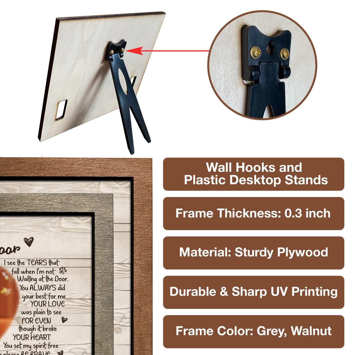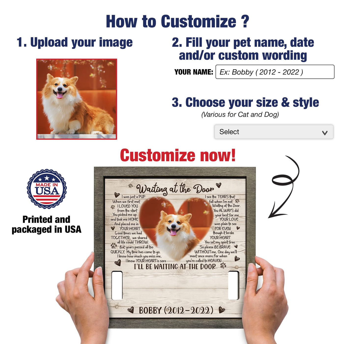 - 2 sizes: 8x8', and 8.7x10.6''. - 2 different color frame: Grey and Walnut. Each of our pet loss sign frames for the dog is very convenient for table decoration applications, pet memorial picture frames for home decors, hanging on the wall or pillar, or put on the table, mantle or shelf. It will make a beautiful pet remembrance item.The most prominent feature of our product is customized. You can have a beautiful keepsake to look at every day can help ease that grief a little bit. I believe that you will be happy and satisfied with our item. Also, your recipients will undoubtedly be pleased and emotional by your genuine care for them. Customer Service: Please contact us if you have any questions! We are always here to reply to all your questions you may have as quickly as possible. If you are unhappy with the gift for any reason, we will be ready to offer you a replacement or a 100% refund as long as our customers feel satisfied.