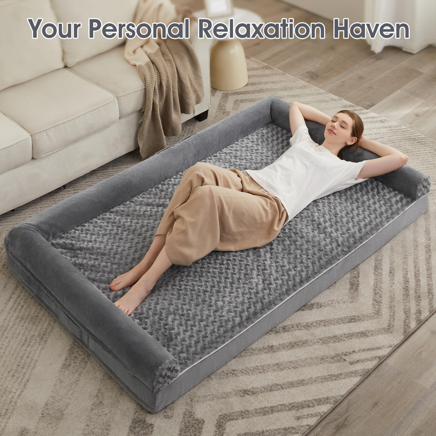 Bfpethome Human Dog Bed For Adult, Orthopedic Human Size Dog Bed For Adult & Kids, Big Waterproof Adult Dog Bed For Humans With Removable Washable Cover