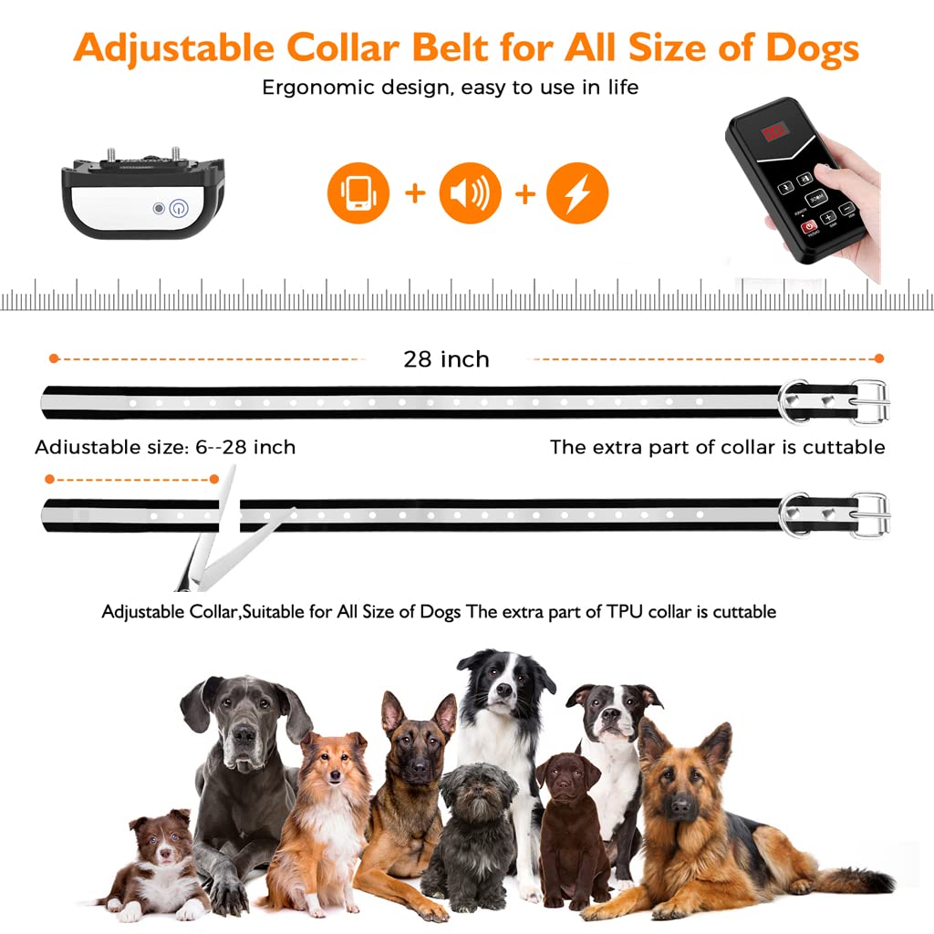 Q: Is the collar adjustable for different dog sizes?A: Yes, the receiver collar is adjustable to fit dogs with neck sizes ranging from 8 to 28 inches, making it suitable for various sizes, from small breeds to large dogs weighing between 10 to 110 pounds.