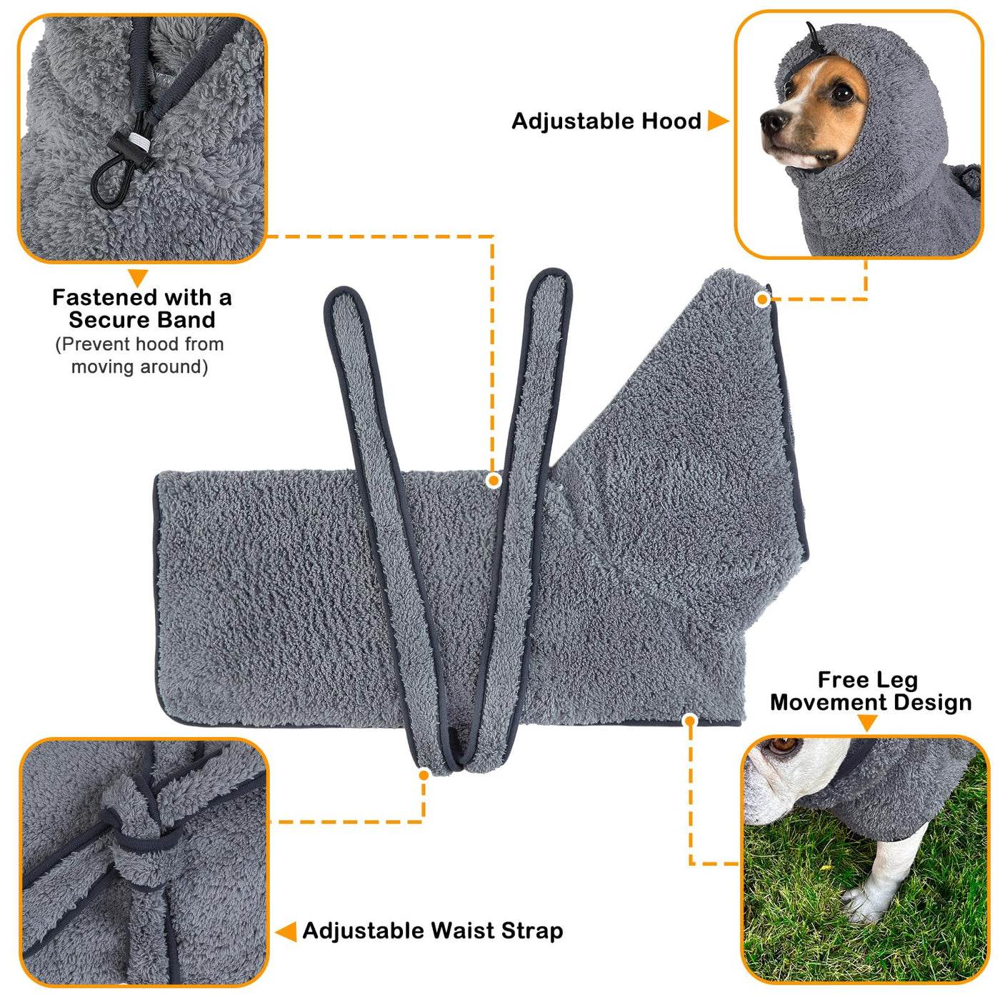 Bienbee Soft Dog Bathrobe,Super Absorbent & Quick-Drying Dog Robe With Hood, Cozy Drying Coat For After Bath, Grey Xl