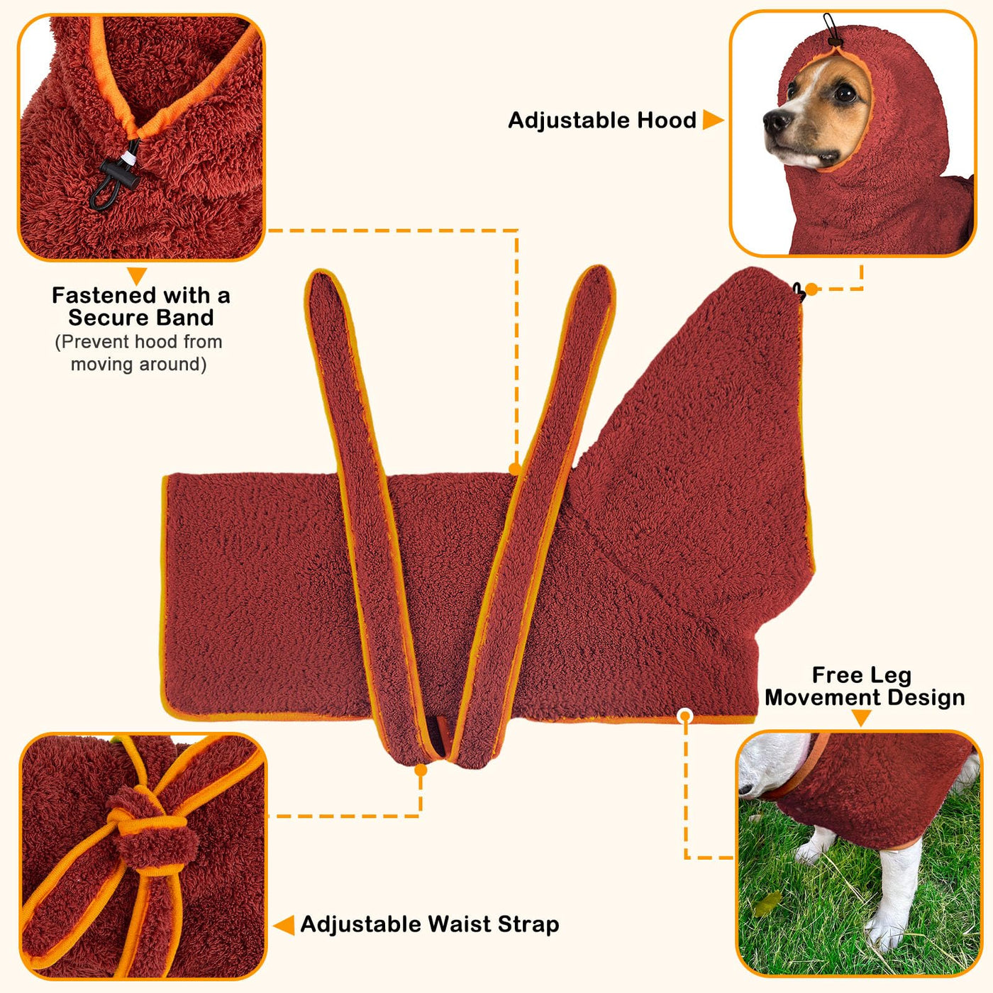 Bienbee Soft Dog Bathrobe,Super Absorbent & Quick-Drying Dog Robe With Hood, Cozy Drying Coat For After Bath, Red Xxl