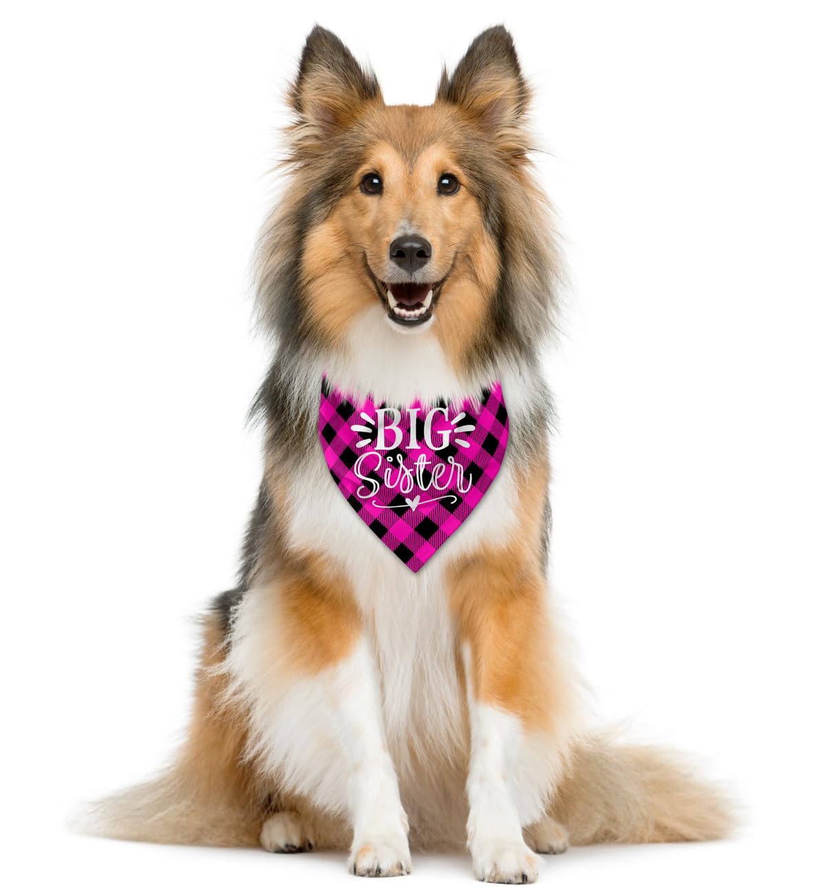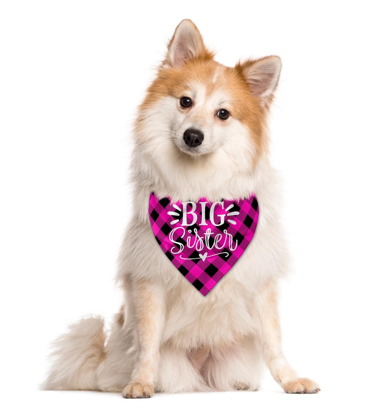 Big Sister Dog Bandana, Buffalo Plaid Pet Scarf, Pet Scarf Accessories, Baby Announcement Dog Bandana, Dogs Bandana Gift For Sma