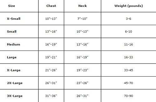Q: What sizes are available for the Biker Dawg Motorcycle Dog Jacket?A: The Biker Dawg Motorcycle Dog Jacket is available in multiple sizes, including XX-Small, X-Small, Small, Medium, Large, X-Large, 2X-Large, and 3X-Large. It is important to measure your pet accurately and choose the size based on the chest and neck measurements provided.
