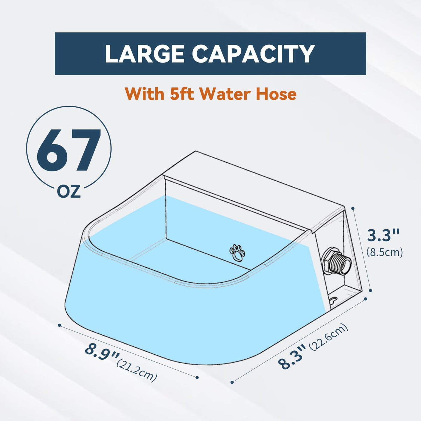 Billionchains Dog Automatic Water Bowl For 3/4 Ght Male Faucet, 2L Outdoor Auto Fill Water Dispenser With 5Ft Water Hose