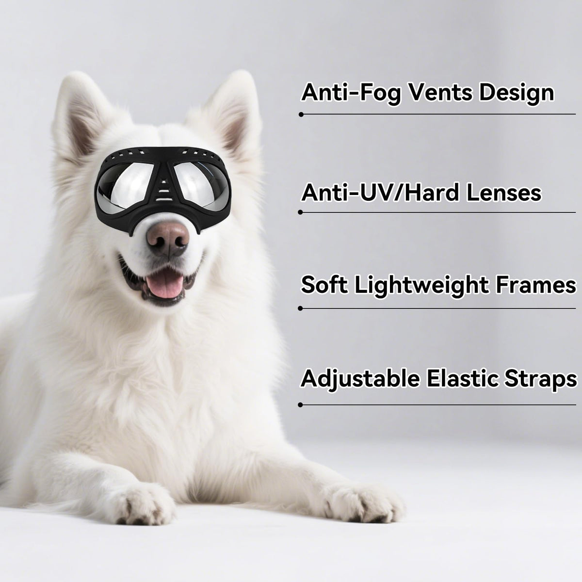Billionchains Dog Goggles Windproof For Medium-Large Breeds Dog Sunglasses Anti-Uv With Adjustable Straps - Black