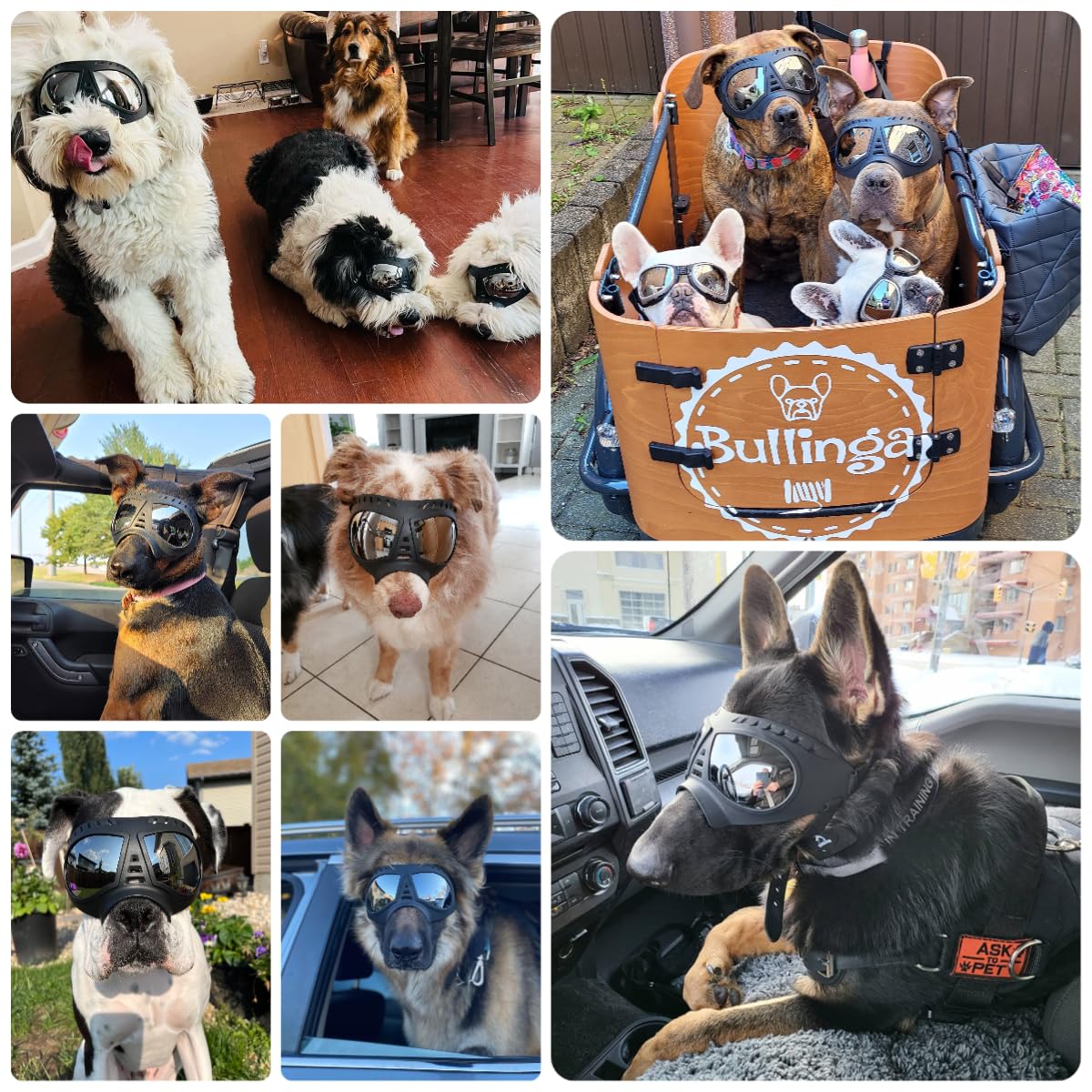 Why Recommend Billionchains Pet Goggles? 1.Dog Like Hanging Head Out The Car Window, Dog Goggles Prevent Your Pet'S Eyes Avoid Damage. 2.Pet Eyes Sensitive To Sunlight, Dog Sunglasses Provides Uv Protection, Waterproof, Windproof And So On. 3.Small Dog Sunglasses Very Suitable For Daily Wear, Such As Riding, Hiking Or Outdoor Activities, Prevent Eyes From A Stray Branch For Walking. How To Wear 4.Stretch The Head And Chin Strap, Then Through Dog Mouth, Put The Head Strap Across The Crown Of The Head To Around Under The Ear Back, Finally Adjust Chin Strap Below The Jaw.