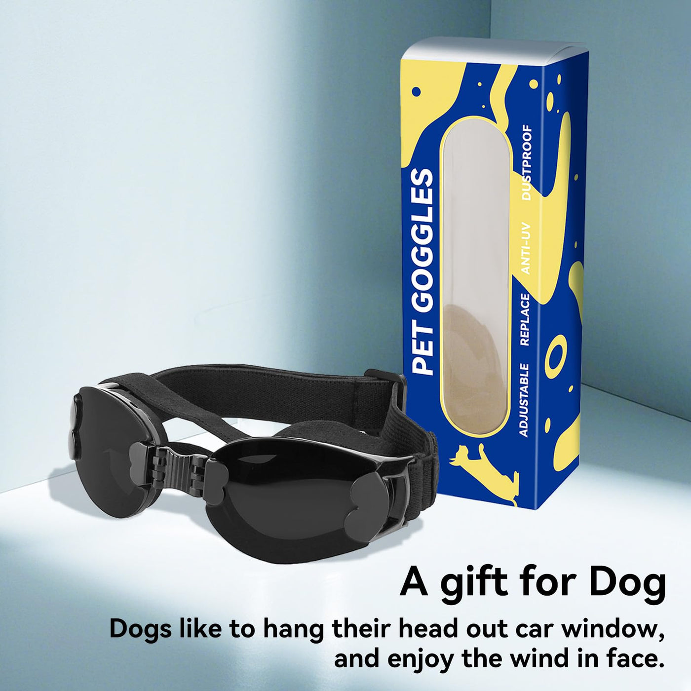 Foldable Pet Goggles-Ensuring Safe And Stylish Adventures For Your Furry Friends Blocks Uv Rays And Intense Glare, Preventing Sand, Dust, Pollen, Debris From Entering The Eyes; Lightweight Materials Ensure Comfortable Wear, Adjustable Straps To Secure In Place. Recommended For Small To Medium Breed, Not Suggest For Yorkshire Terrier, Chihuahua Or Teacup Dog. Suggest To Wear Dog Goggles While Riding, More Easier To Be Accepted.