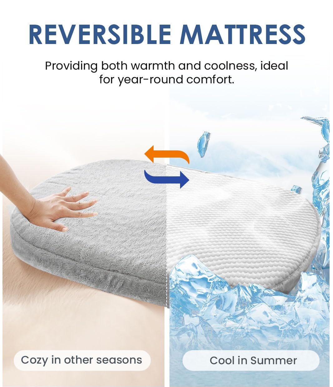 Key Features:Design: Square Bed With Rounded Corners And Elevated Side Bolsters All Around.Accessibility: Front Of Bolsters Is Lower, Making It Easy For Small Or Senior Dogs To Enter.Comfort: Enclosed Wall Bolster Create A Nest-Like Space, Perfect For Pets Who Love To Curl Up.Removable Covers: The Zipped Cover Of Mattress Is Completely Removable And Machine Washable. Orthopedic Support: High-Density Egg Crate Foam Mattress Relieves Pressure Points And Joint Pain.Versatility: Reversible Base Cushion Cover With Plush Faux Fur For Warmth While Cooling Fabric For Summer.Chew-Resistant: Upgraded Canvas Fabric, To Some Extent, Can Resist The Scratching And Chewing Of Dogs.Non-Slip Bottom: Anti-Slip Dots On The Bottom Help Keep The Dog Bed In Place.Sizes: Available In S, M, L, Xl, Xxl To Suit Pets Of All Sizes.Treat Your Furry Friend To The Ultimate In Comfort And Style With This Unique And Functional Dog Bed! Ps: If You Prefer Extra Space For Your Pup, Consider Sizing Up.