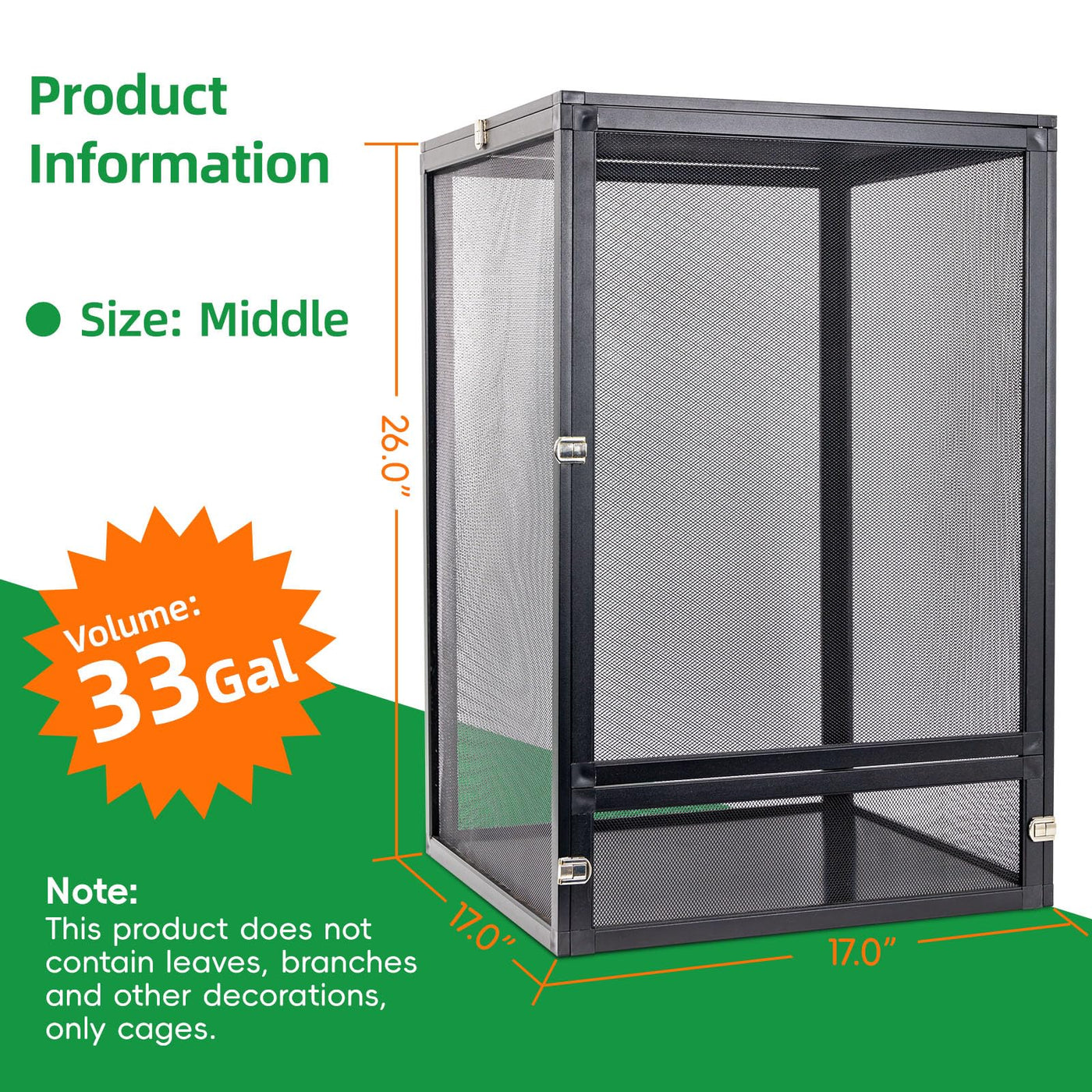 Binano 33 Gal Detachable And Foldable Reptile Butterfly Cage Terrarium, 360 Observation, Airflow, Interaction In Gecko Tank For