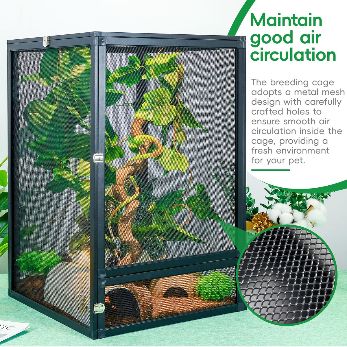 Detachable And Foldable Reptile Terrarium, 360 Observation, Airflow, Interaction In Gecko Tank And Reptile Terrarium Kit For Crested Geckos, Frogs, Leopard Geckos, Chameleons, And Bearded Dragons