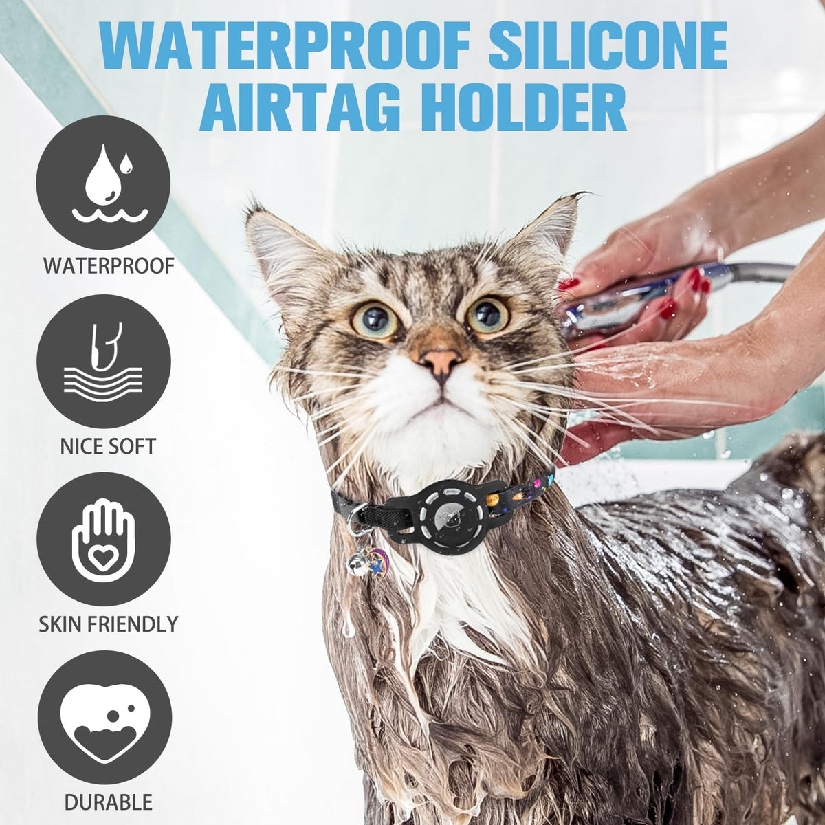 Bingpet Airtag Cat Collar With Bells, Upgraded Safety Elastic Cat Collar With Airtag Cat Collar Holder, Anti-Lost Cat Collars Fo