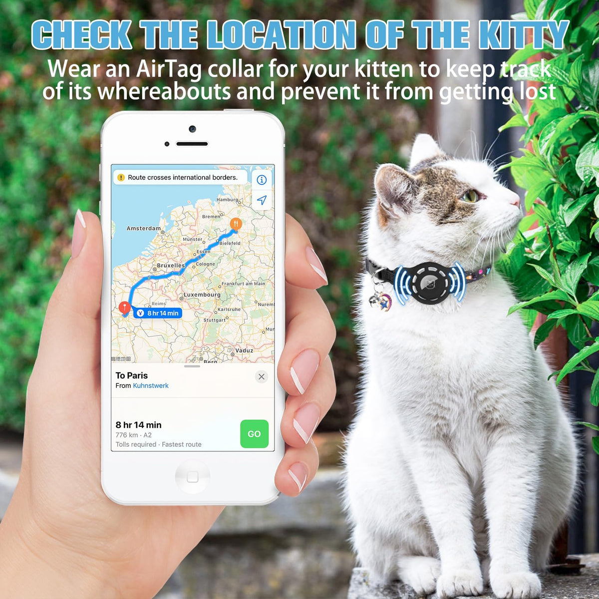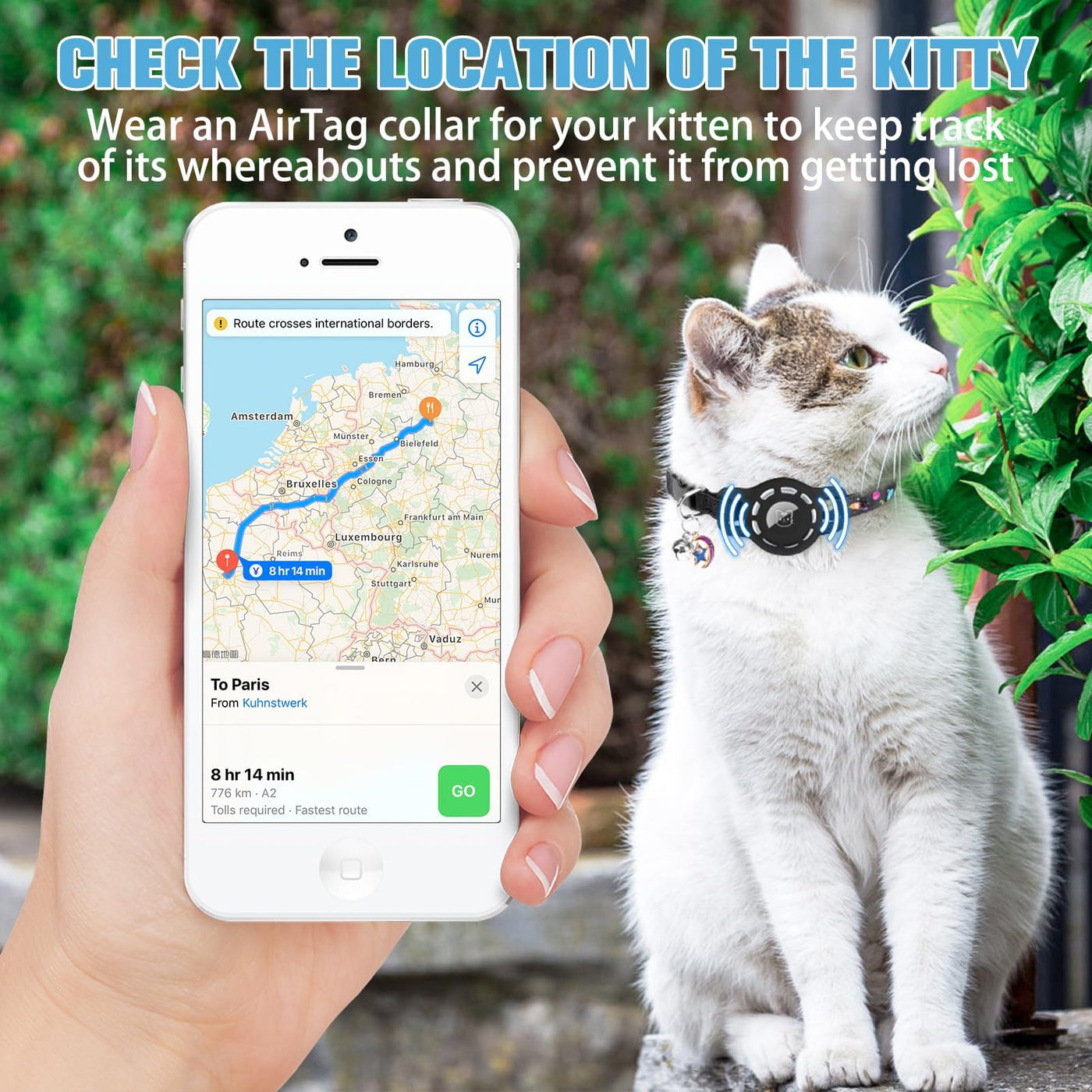 SAFE DESIGN: BINGPET AirTag pet collar adds elastic strap make sure that your cat can quickly break free when a foreign object is caught in the neck. In addition Bell with melodious sound can immediately let you know where your cat is.