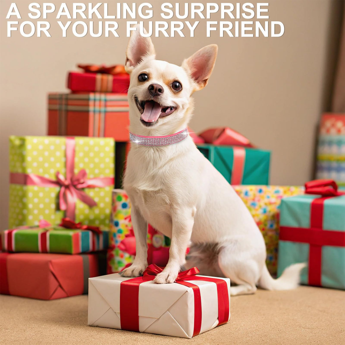 Bingpet Dog Collar For Small Dogs,Bling Rhinestone Puppy Collar Adjustable,Soft Leather Suede Pink Dog Collars Cat Collars For G