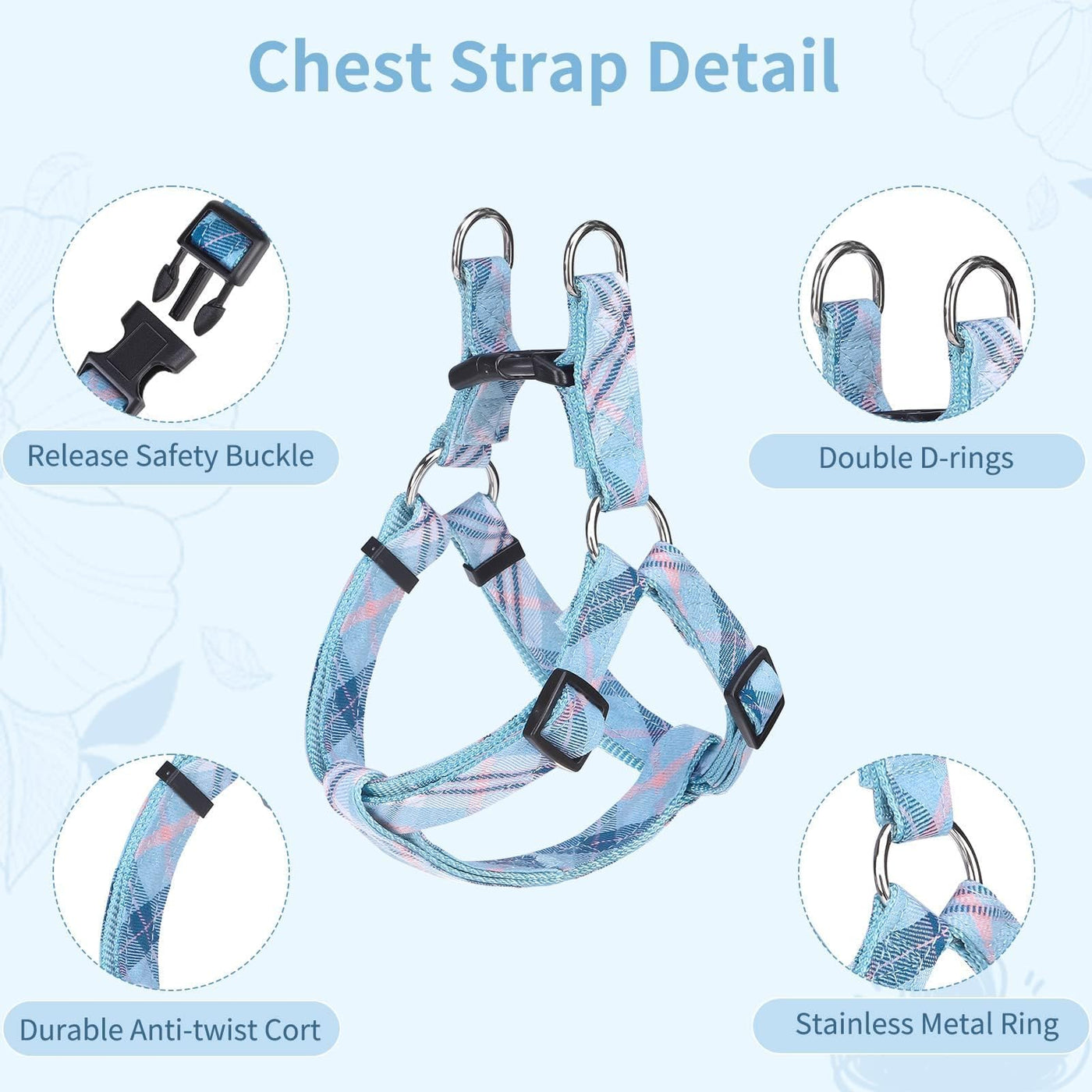 Bingpet Dog Harness Collar Leash Set,Adjustable No Pull Escape Proof Small Dog Harness,Classic Plaid Puppy Harness And Leash Set For Small Medium Large Dogs Training Easy Walk Running(Blue,M)