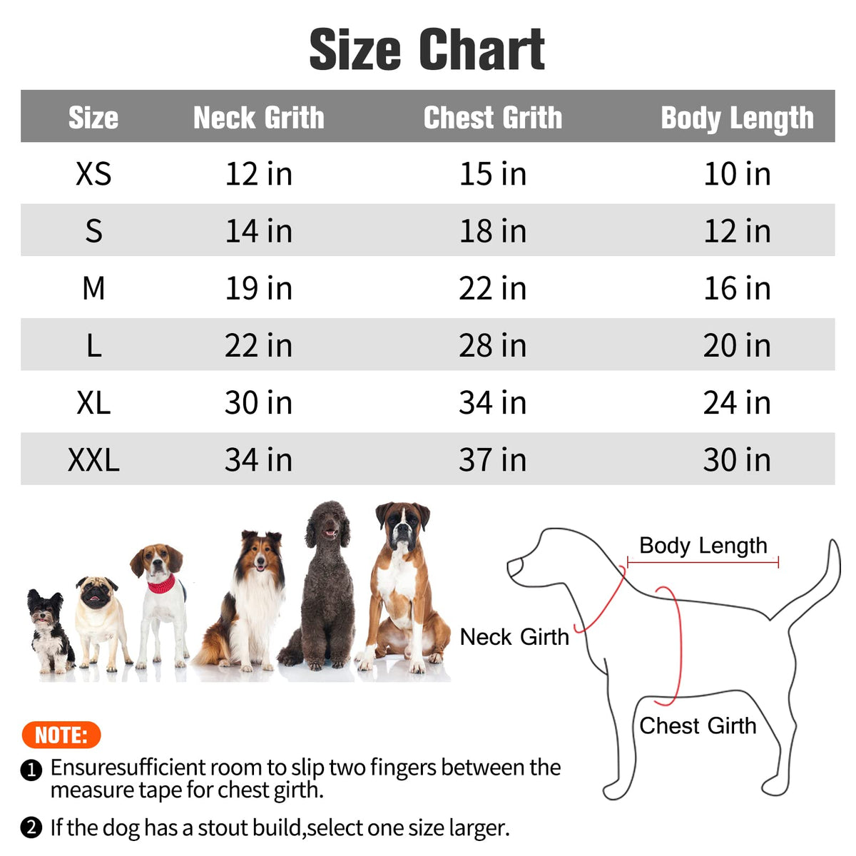 Q: Should I choose a larger size for my dog?A: Yes, if your dog's measurements are at the top of the range for their size, it's recommended to choose the next size up for a looser and more comfortable fit.