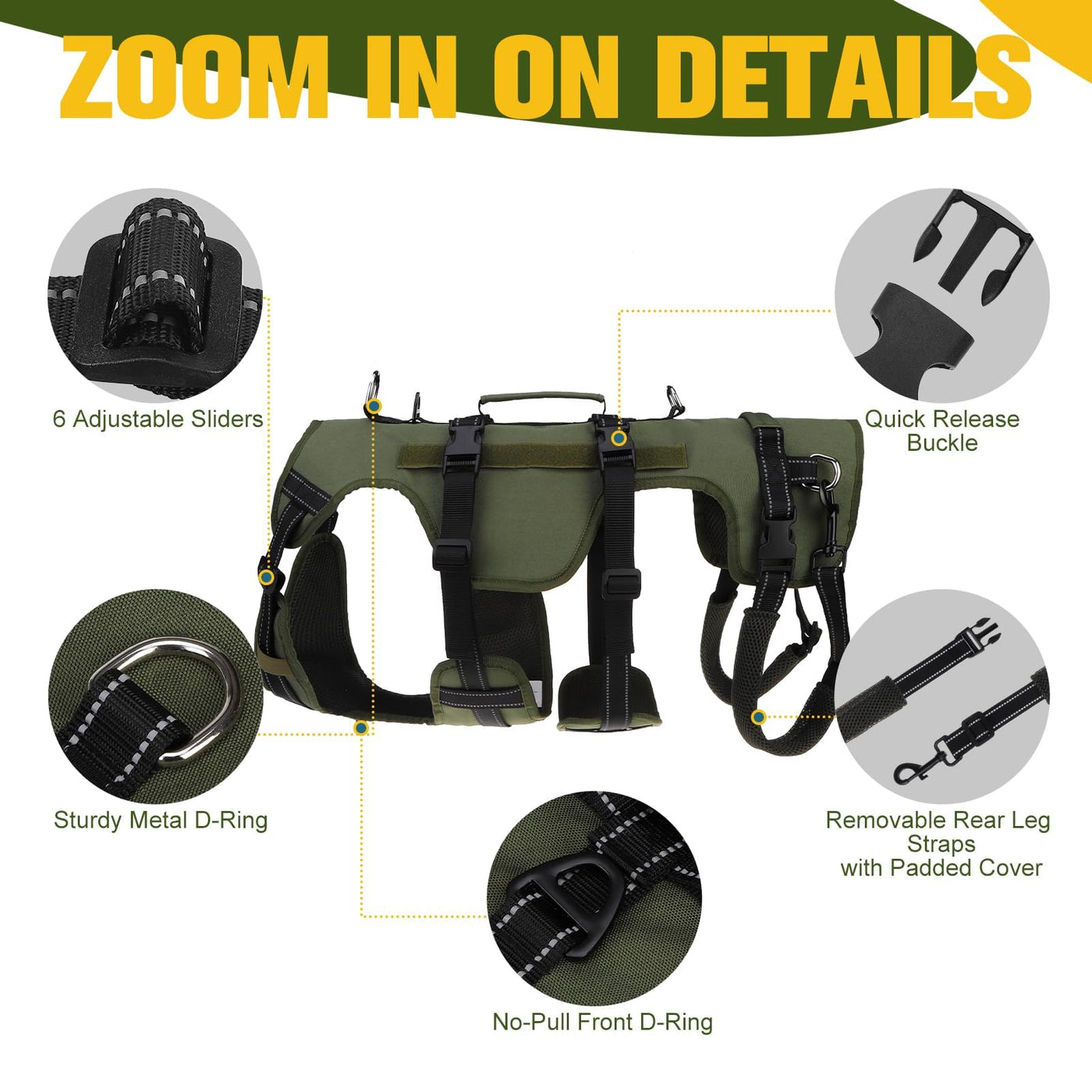 Bingpet Dog Lift Harness For Large Dogs,Full Body Support Rehabilitation Dog Sling Carrier With Handles,Reflective Multifunction
