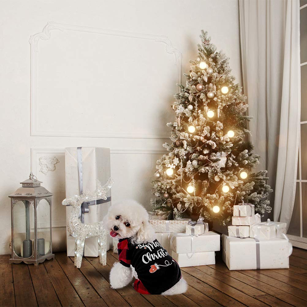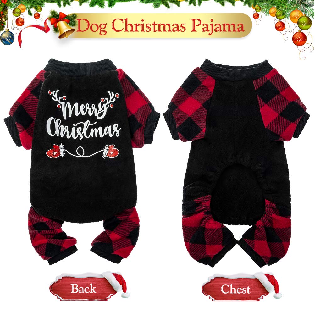 [Size Check]: S Chest Girth 16'' Body Length 12'' Neck Girth 10'' M Chest Girth 22'' Body Length 16'' Neck Girth 14'' L Chest Girth 26'' Body Length 20'' Neck Girth 18'' Please Measure Your Dog'S Chest Girth And Back Length According To Our Guide Before Buying. | [Quality Material]: This Family Pajama Is Made Of 100% Polyester Super Soft And Lightweight Especially The Polar Fleece Can Keep The Pet Warm Best Choice For Chilly Days And Nights With This Comfy Layer Of Warmth. | [Smart Design]: Elastic Design Make This Dog Pajama Easy To Put On And Take Off Stylish And Festival Pajamas Are Not Only Comfortable And Eye-Catching But Also Prevent Hair Off To Make Your Home Clean And Nice. Important That Wearing Pajamas Is Good Idea For New Puppies To Keep Warm In Cold Night. | [Great Appearance]: Red And Black Plaid Design Classical For Whole Season Wearing. Cute Elk Christmas Pattern In The Back Of The Dog Pajamas Sets Off The Atmosphere Of Christmas. Let Your Pet More Fashion And Have A Good Time At Christmas. | [Target Pet]: Our Fleece Pajamas Are Mainly For Small To Medium Size Dogs All Cats Rabbit And So On Such As Chihuahua Poodle Cup Poodle Pomeranian Yorkshire Terrier Cocker Spaniel. If Your Dog Are Between Two Sizes We Recommend That You Can Buy A Bigger Size For Cozy Wearing And Your Puppy Growth.