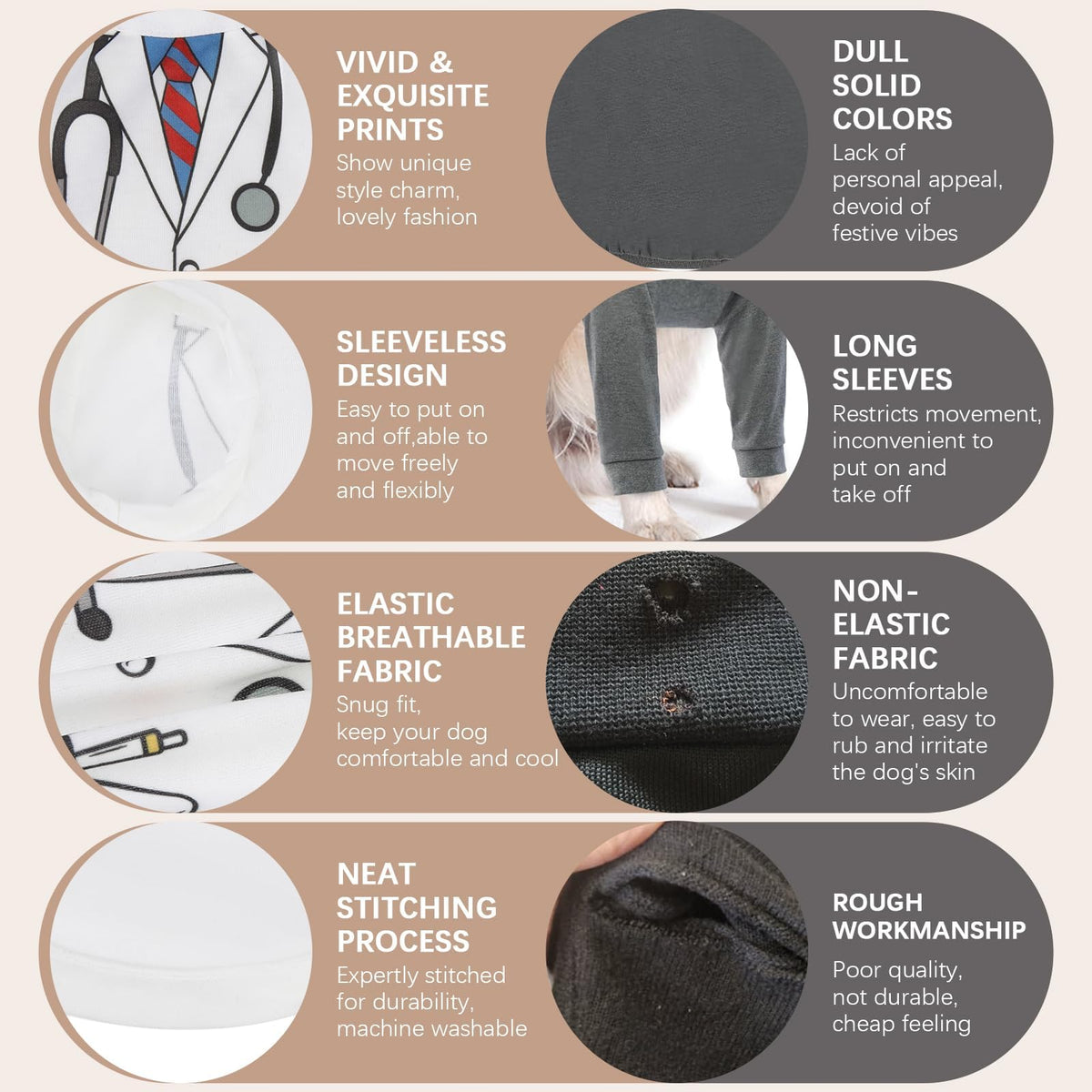 Bingpet Dog Shirt - Doctor Costume Print, Lightweight Dog Tank Top, Soft Breathable Puppy Sweatshirt(Chest Girth 20In)
